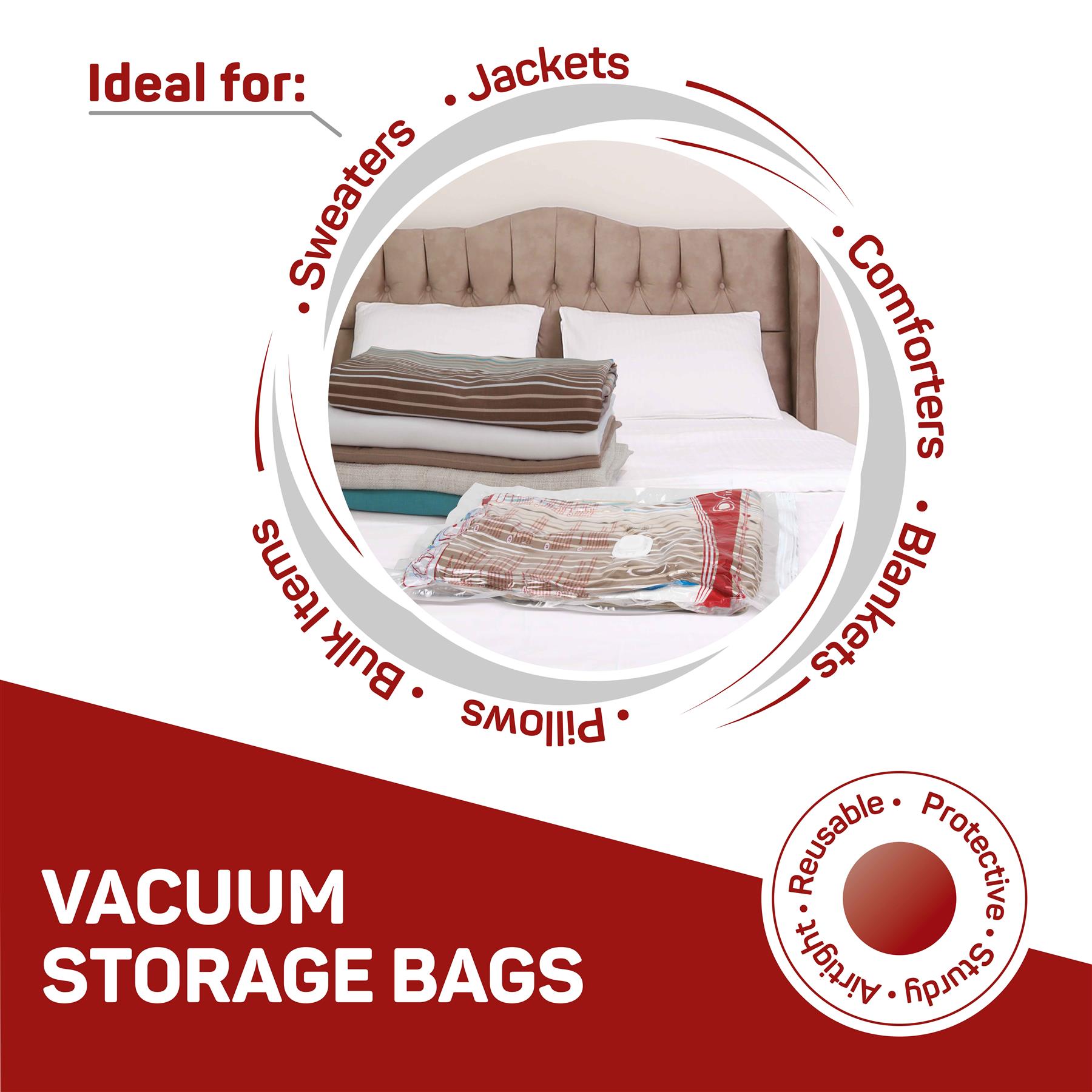 REUSABLE STORAGE BAGS - The vacuum storage bags work with any standard vacuum cleaner to make travelling a breeze as you can easily repack your clothes for your journey home, saving you tons of space in your bag.
