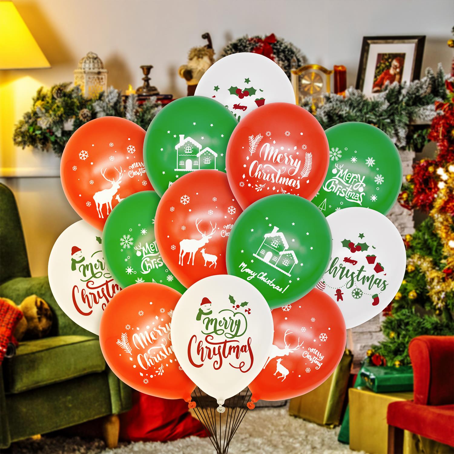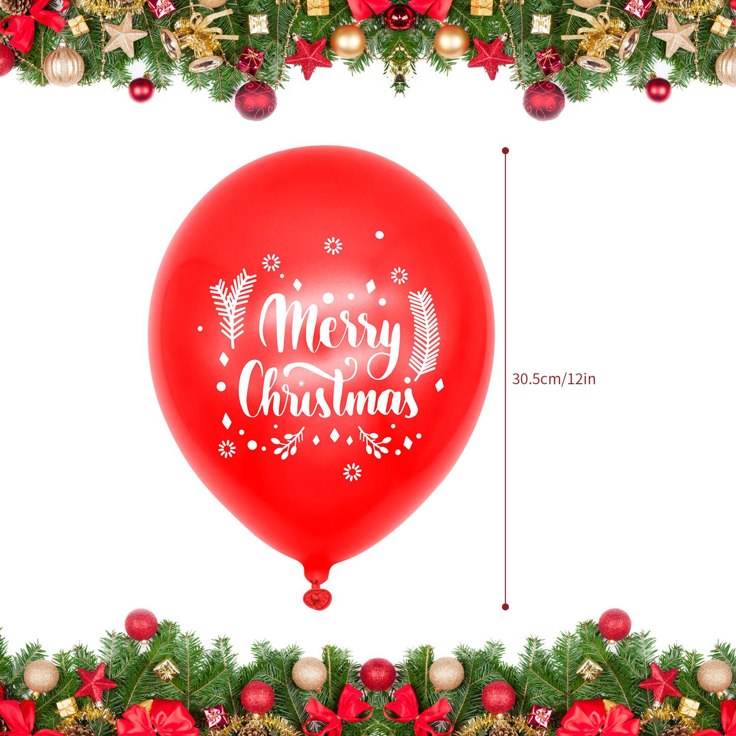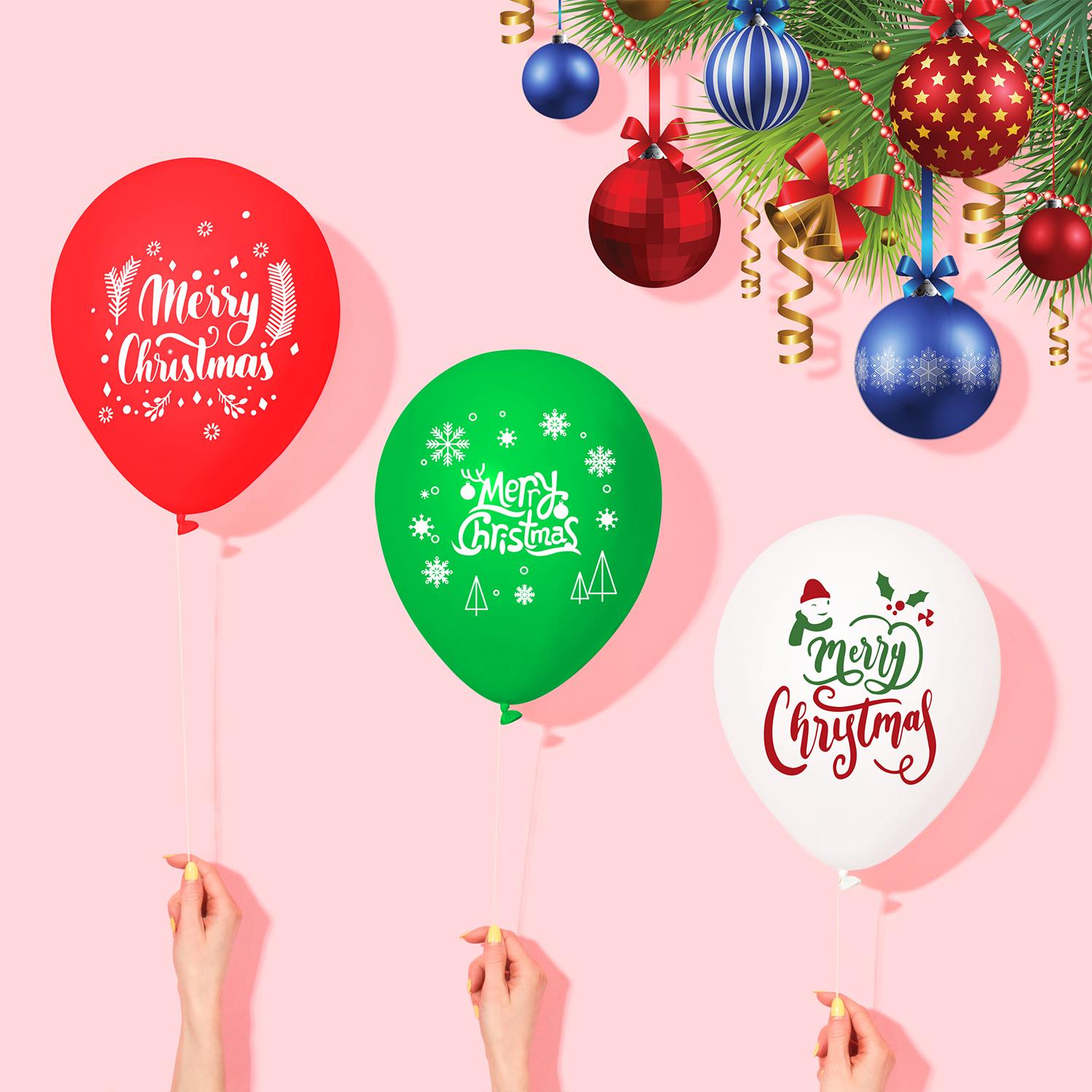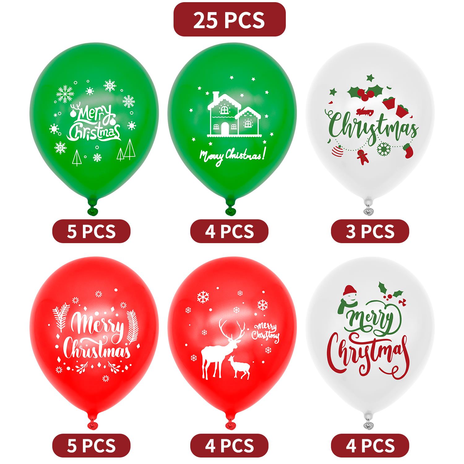 PACKAGE INCLUDES: This package includes Green 12” Latex Balloons, Red 12” Latex Balloons, White 12” Latex Balloons, with 6 different festive prints. Plenty of balloons to make your Christmas decoration complete.