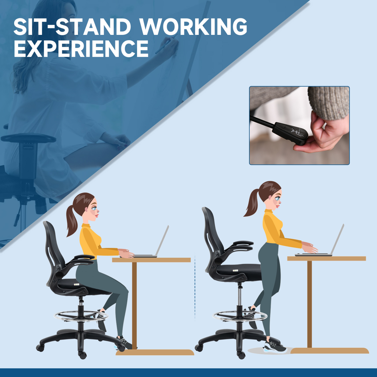Vinsetto Draughtsman Chair Tall Office Chair w/ Adjustable Footrest Ring Black