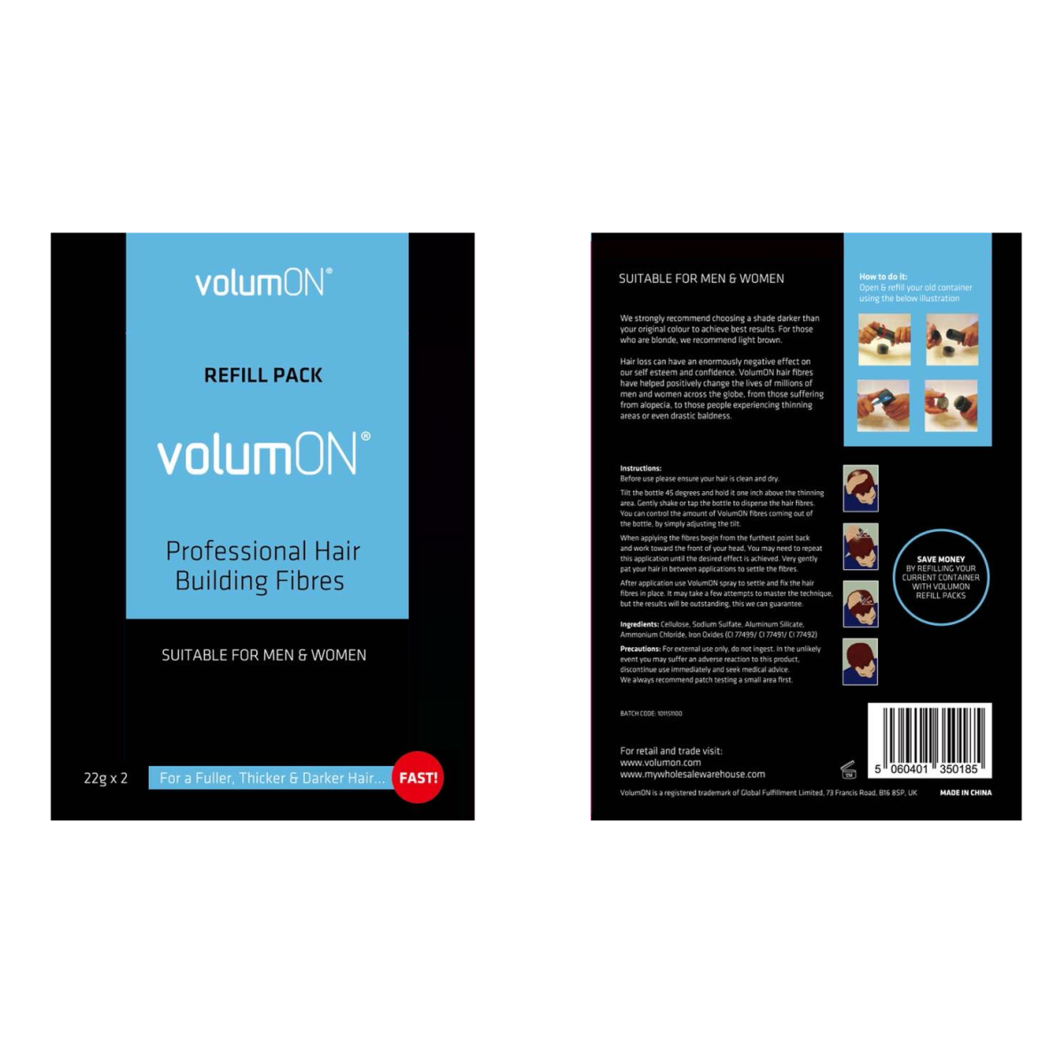 Looking to save on your hair loss fibre routine? Volumon Hair Loss Concealer Refill Packs are the smart, cost-effective solution. Designed for convenience, these refill sachets let you replenish your existing hair fibre container effortlessly. Say goodbye to unnecessary waste and hello to quick and seamless application!