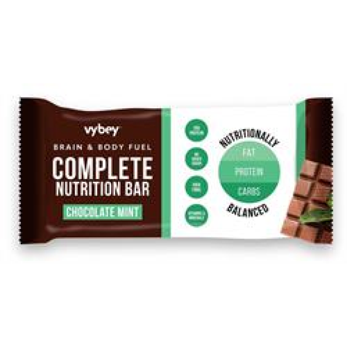 Vybey Complete Nutrition Bar Chocolate Mint. 80g bar.