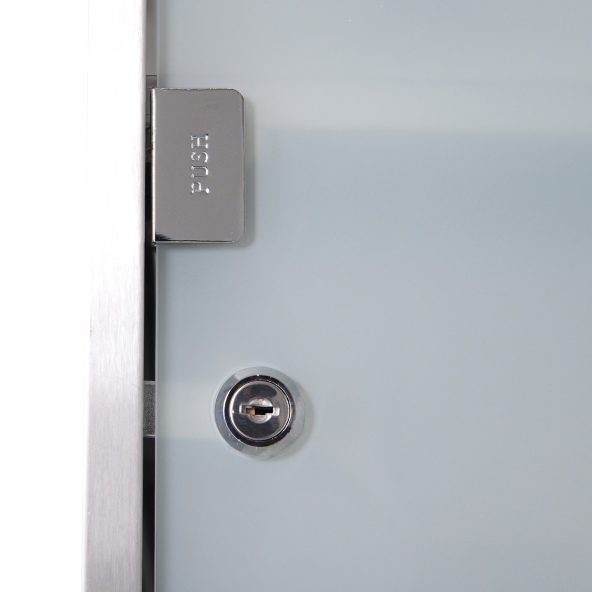 The security glass door is lockable with 2 keys.Tipp-on magnetOverall Size: 48cm (H) x 25cm (W) x 12 cm (D)