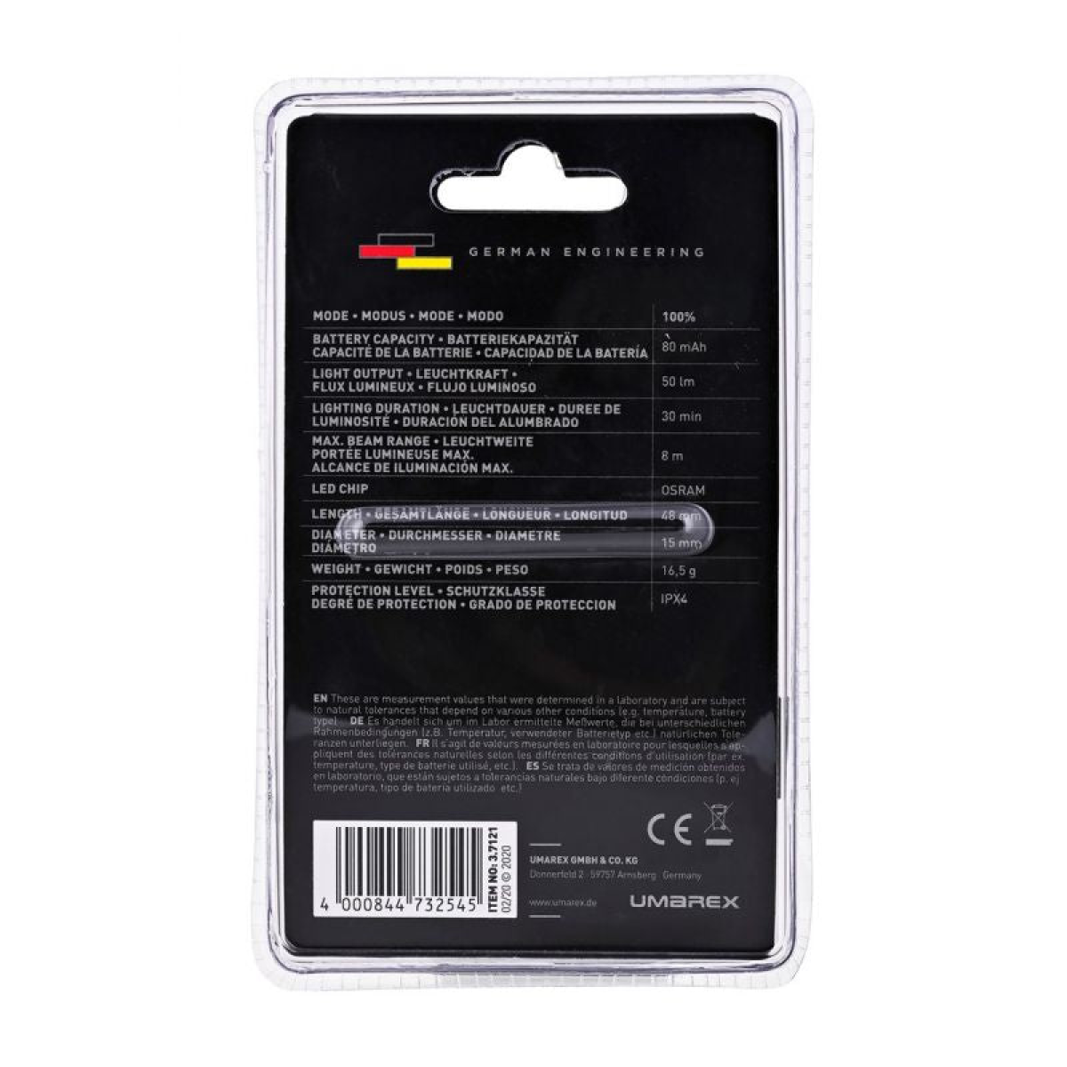 - Light output (max): 50 lm