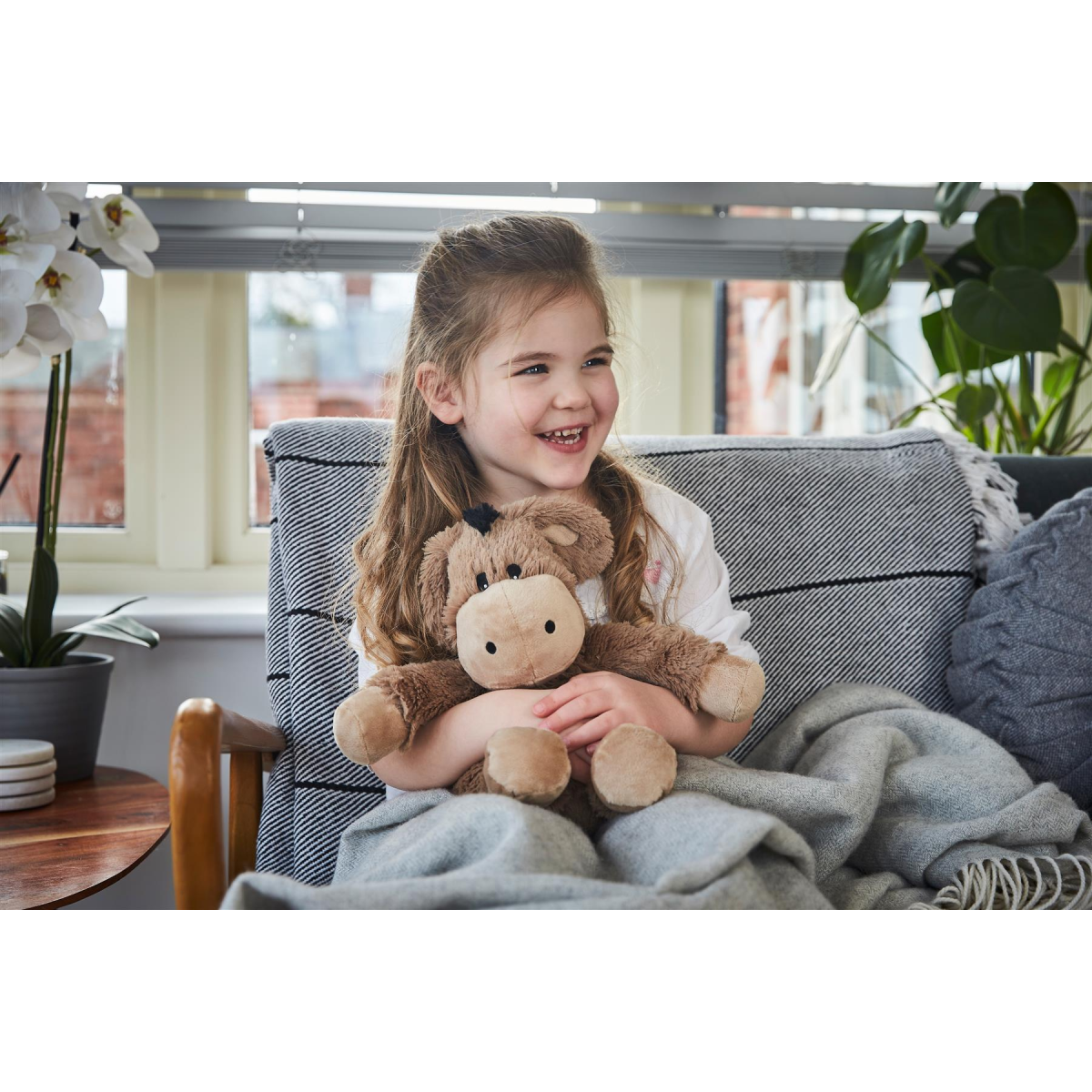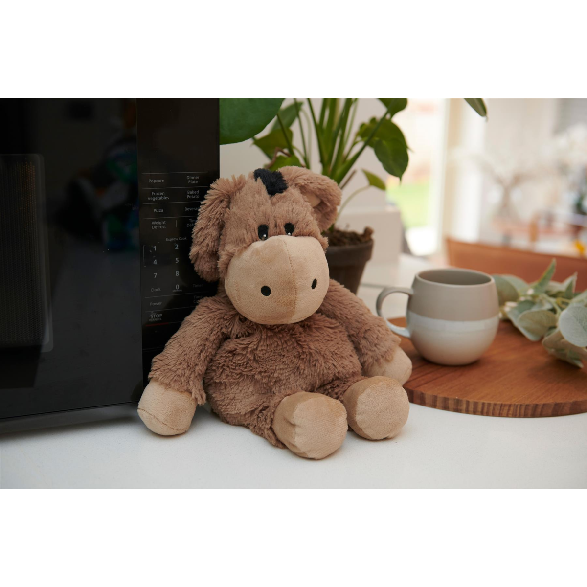 Warmies Donkey are fully heatable soft pad that can be heated in a microwave to provide hours of soothing warmth and comfort. These luxuriously soft plush designs are gently scented with relaxing lavender and can be reheated time and time again. Warmies are weighted, warming, scented and super cuddly, suitable for all ages! Simply warm for 60 seconds in a 850-1000W microwave or up to 90 seconds in a 600-800W microwave. Soothes, Warms and Comforts. Scented with French Lavender. Chill in a Freezer for Cooling Relief. Surface clean regularly with a lightly damp cloth, allow to dry at room temperature. DO NOT IMMERSE IN WATER.