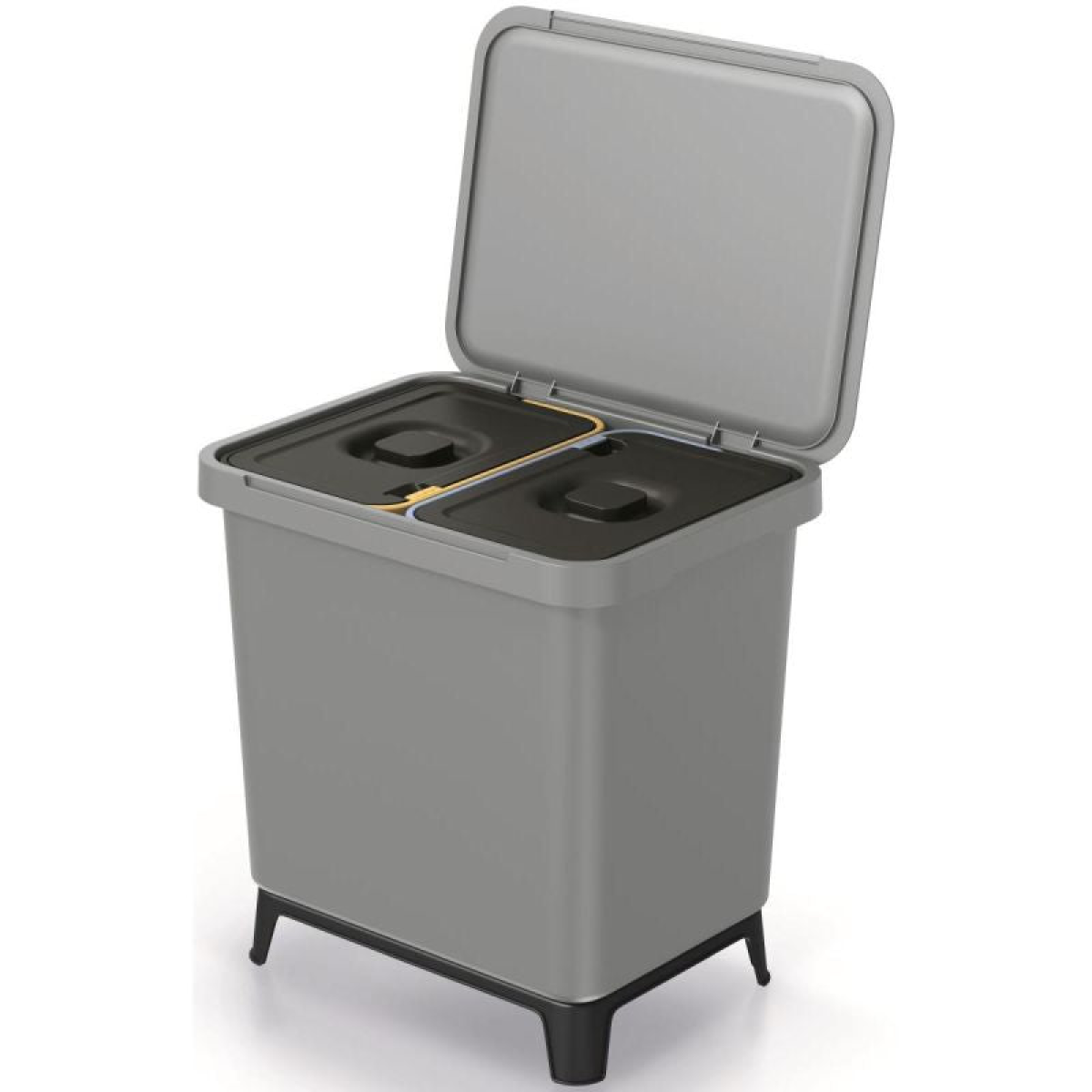 This small waste bin with two inserts inside, each with a capacity of 10 L, ensures quick access, hassle-free emptying and easy cleaning and sorting.