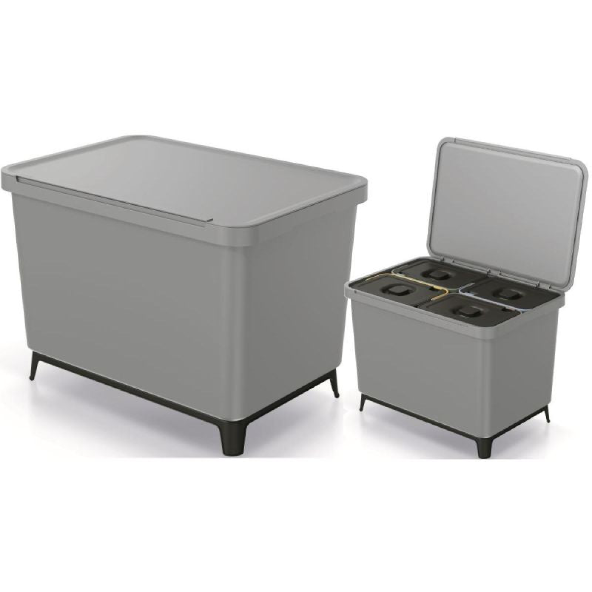 This functional waste bin with 4 inserts inside, each with a capacity of 10 L, ensures quick access, hassle-free emptying and easy cleaning and sorting.