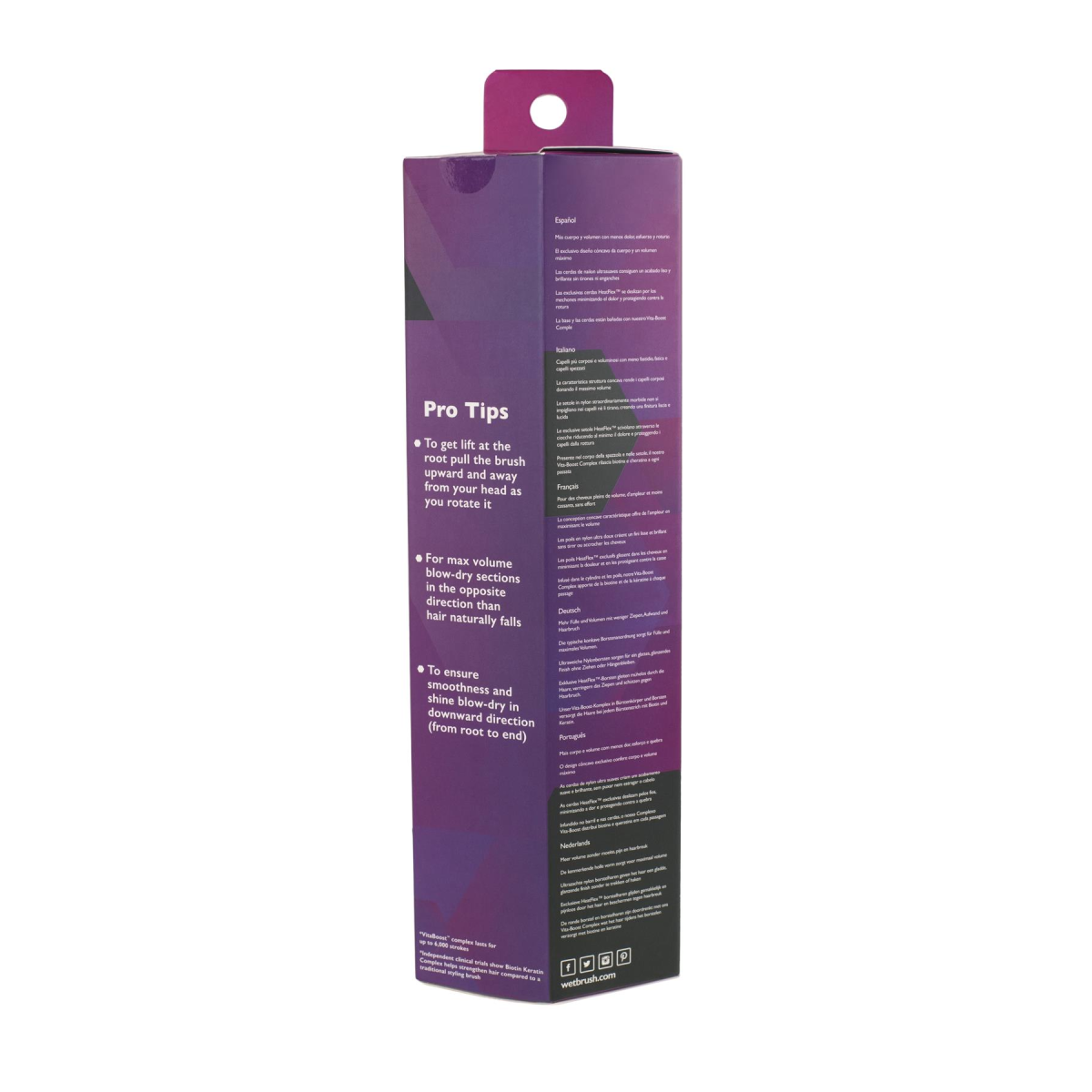 More body and bounce with less pain, effort and breakage Exclusive HeatFlex™ bristles bend and flex to effortlessly detangle and remove knots with less pain and breakage while you style Ultra soft nylon bristles smooth the cuticle and enhance shine without pulling or snagging Unique concave bristle design gets closer to the root and maximizes control for more body and volume Vita-Boost (tm) infused barrel and bristles coats hair with biotin and keratin with every stroke to help strengthen and protect against damage. Ceramic barrel emits negative ions for shiny, frizz-free styles