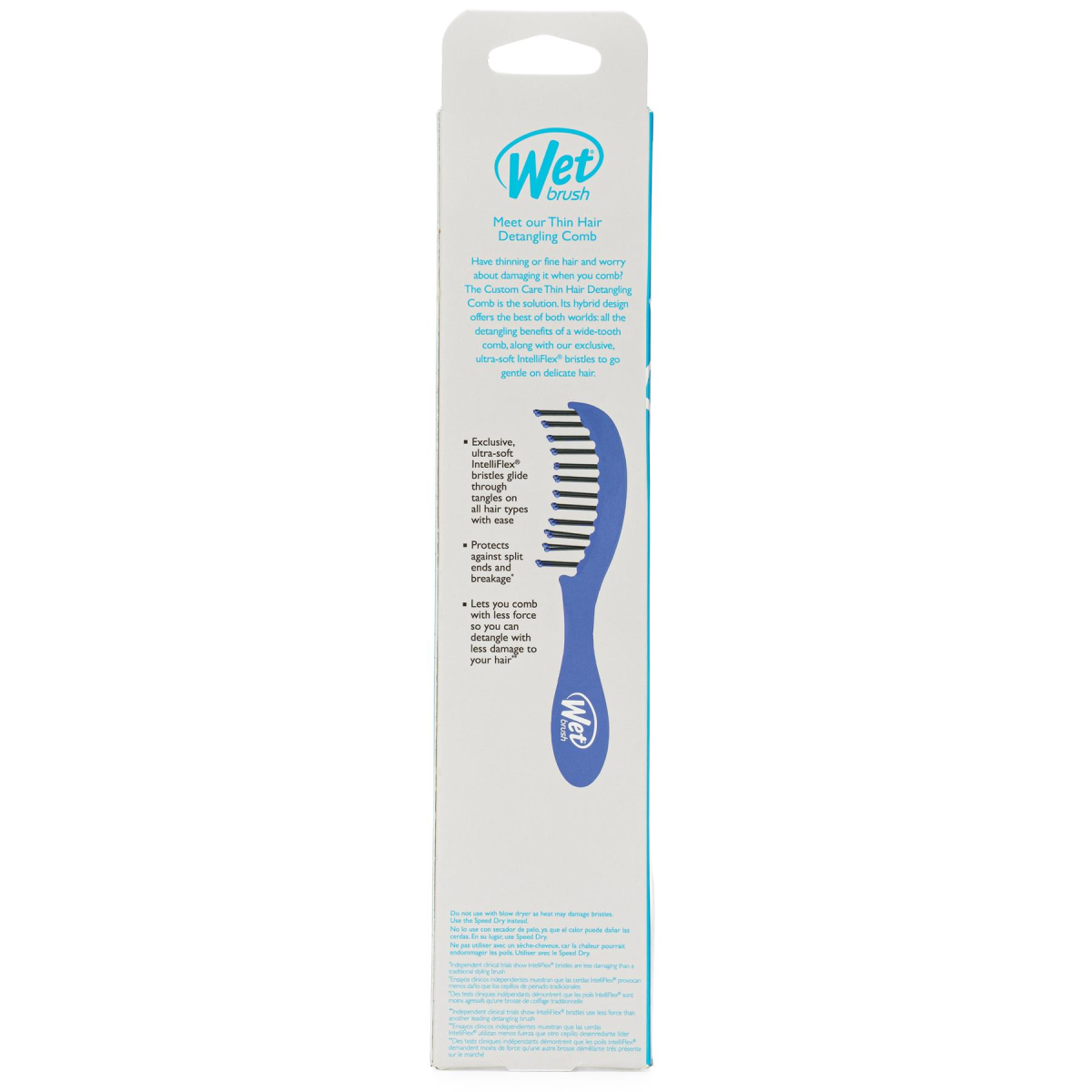 Meet The Custom Care Thin Hair Detangling Comb Have thinning or fine hair and worry about damaging it when you comb? The Custom Care Thin Hair Detangling Comb is the solution. Its hybrid design offers the best of both worlds, all of the detangling benefits of a wide-tooth comb, along with our exclusive ultra-soft IntelliFlex® bristles to go gentle on delicate hair. Great for thinning and fine hair.