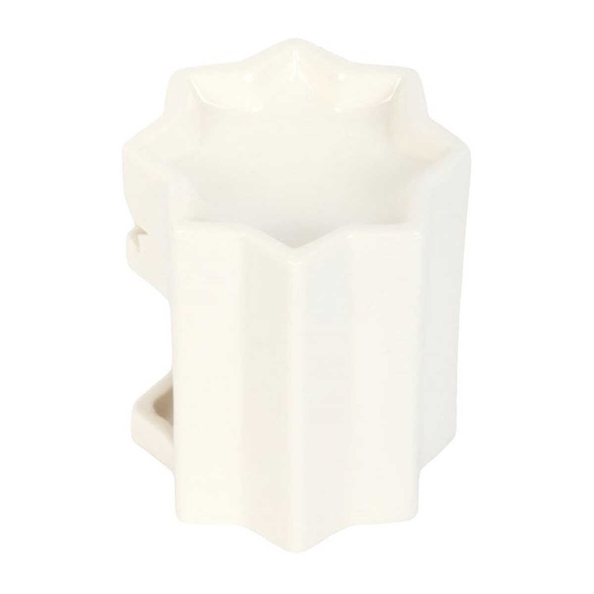This white star-shaped oil burner is ideal for adding celestial magic to your home all year long. Just add your favourite fragrance oil for a moment of serenity. Suitable for use with fragrance oil only. Simply place a standard tealight in the holder and enjoy.