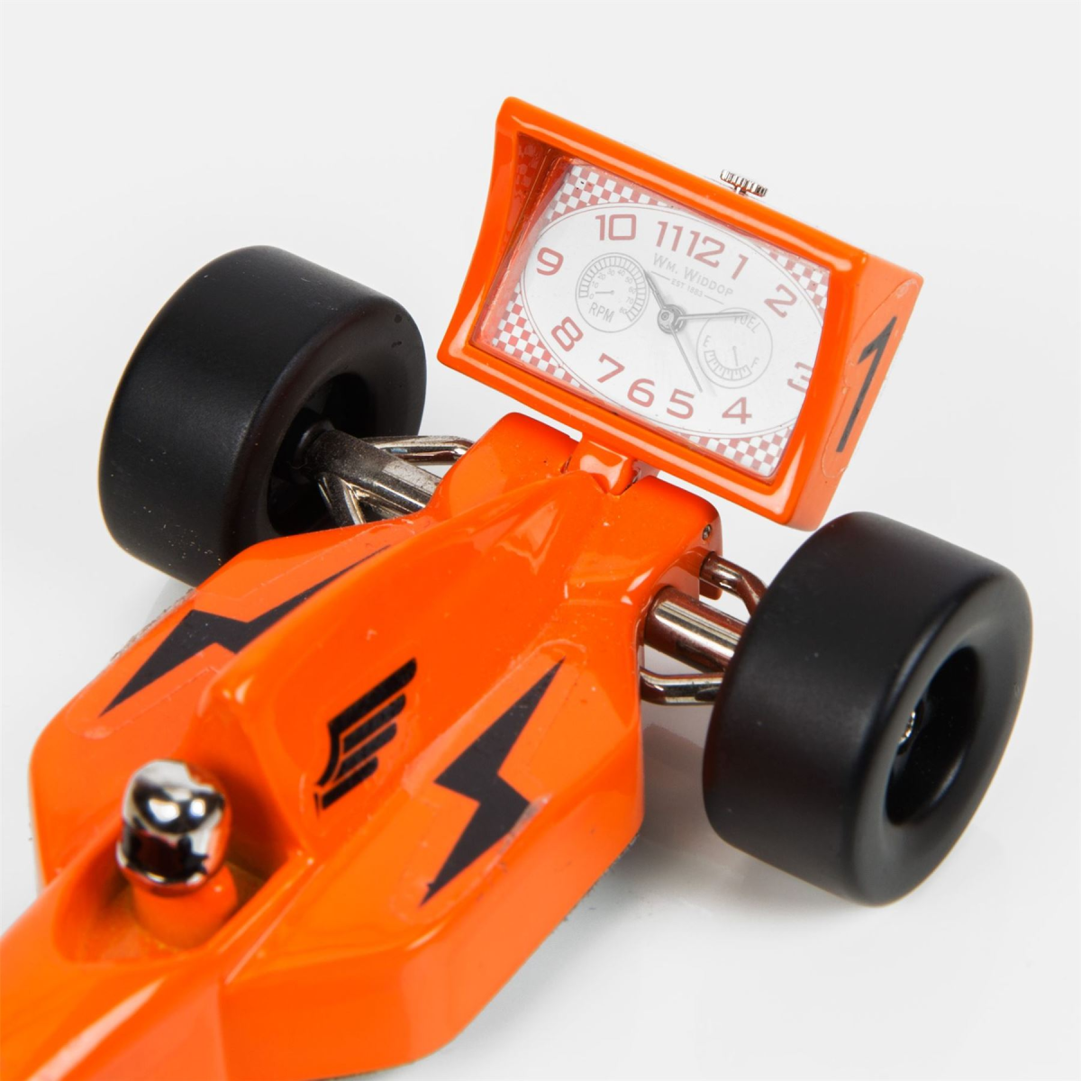 Wm Widdop Miniature Clock - Orange Racing Car