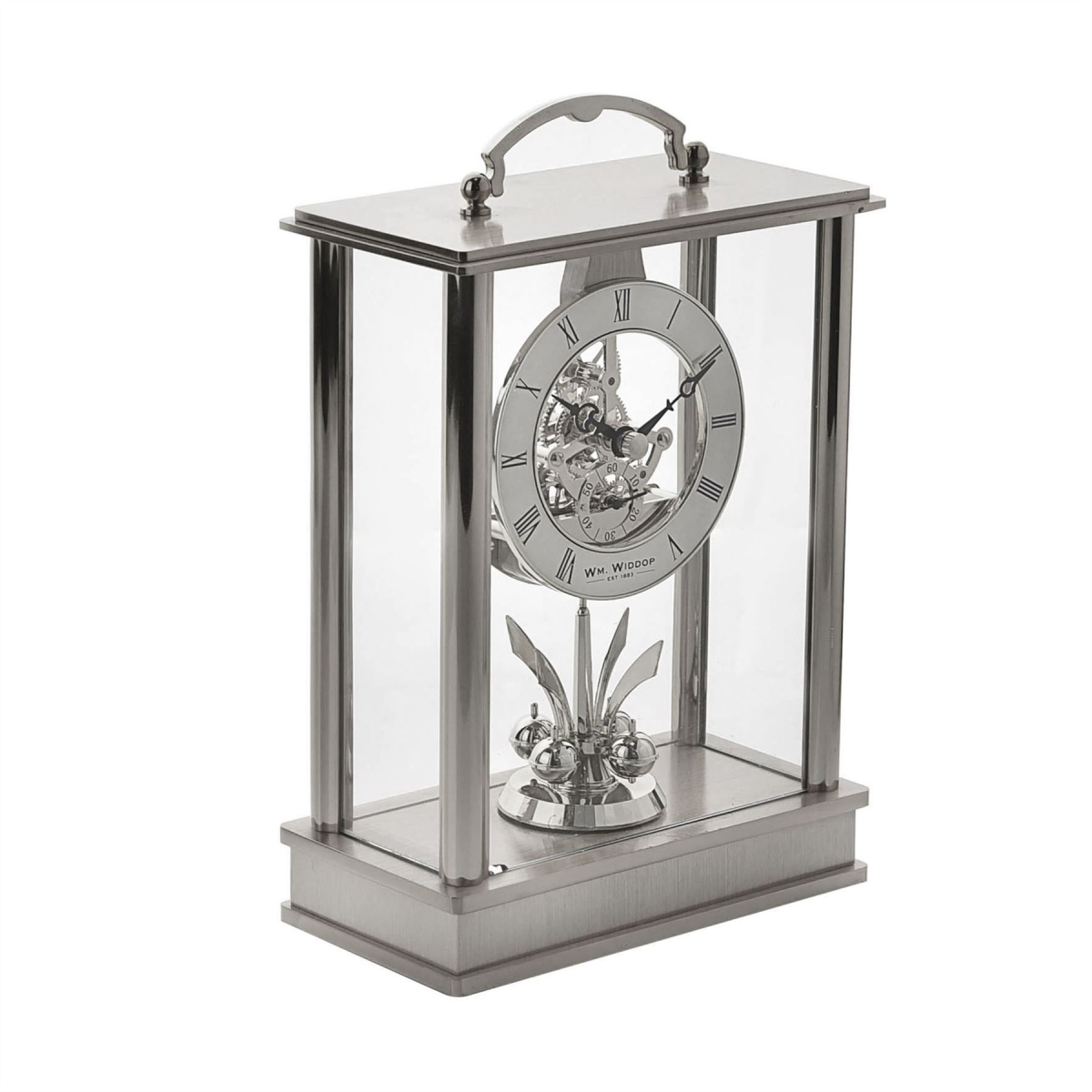 A brushed aluminium carriage clock from WILLIAM WIDDOP�.