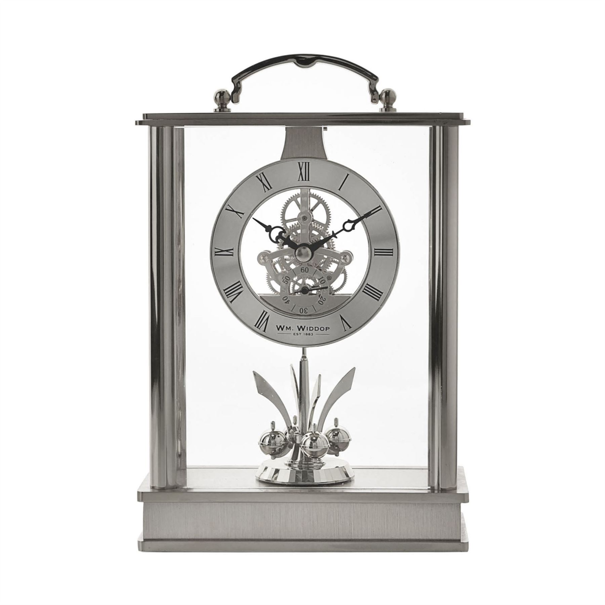 The glistening appearance showcases the clock�s beautiful design, intricate detailing and rotating pendulum, located below the clock face. The clock is encased within glass panels, completed by a �floating� Roman dial, decorative clock hands and skeleton movement.