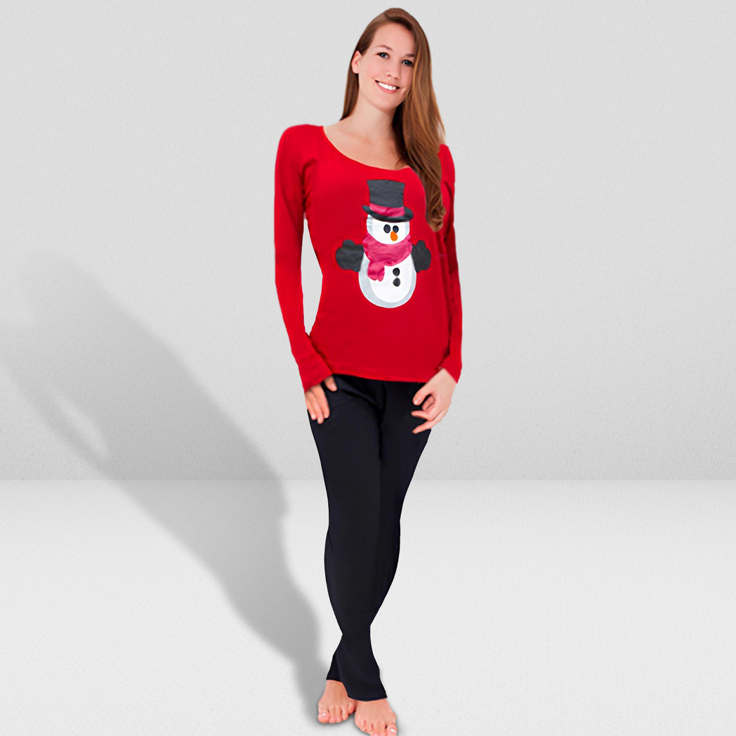 Women-039-s-Reindeer-Snowman-Christmas-Themed-Winter-Two-Piece-Pyjama-Set