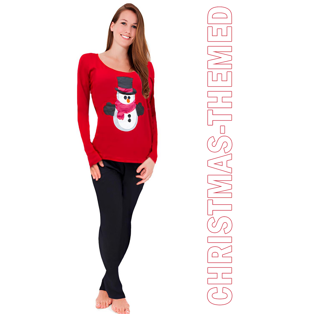 Women's Reindeer/Snowman Christmas Themed Winter Two-Piece Pyjama Set