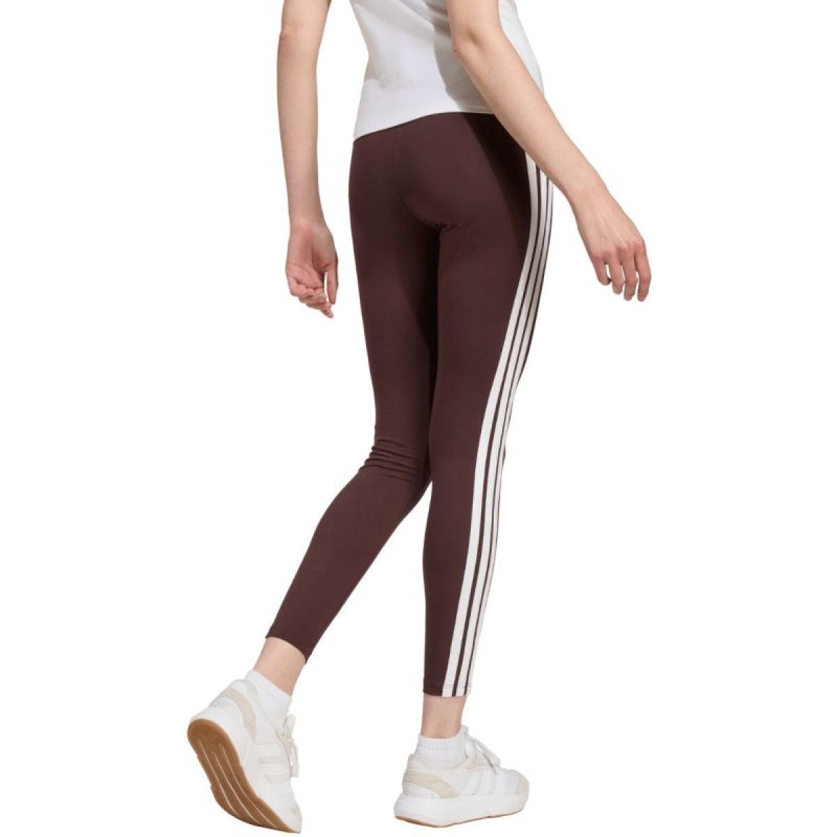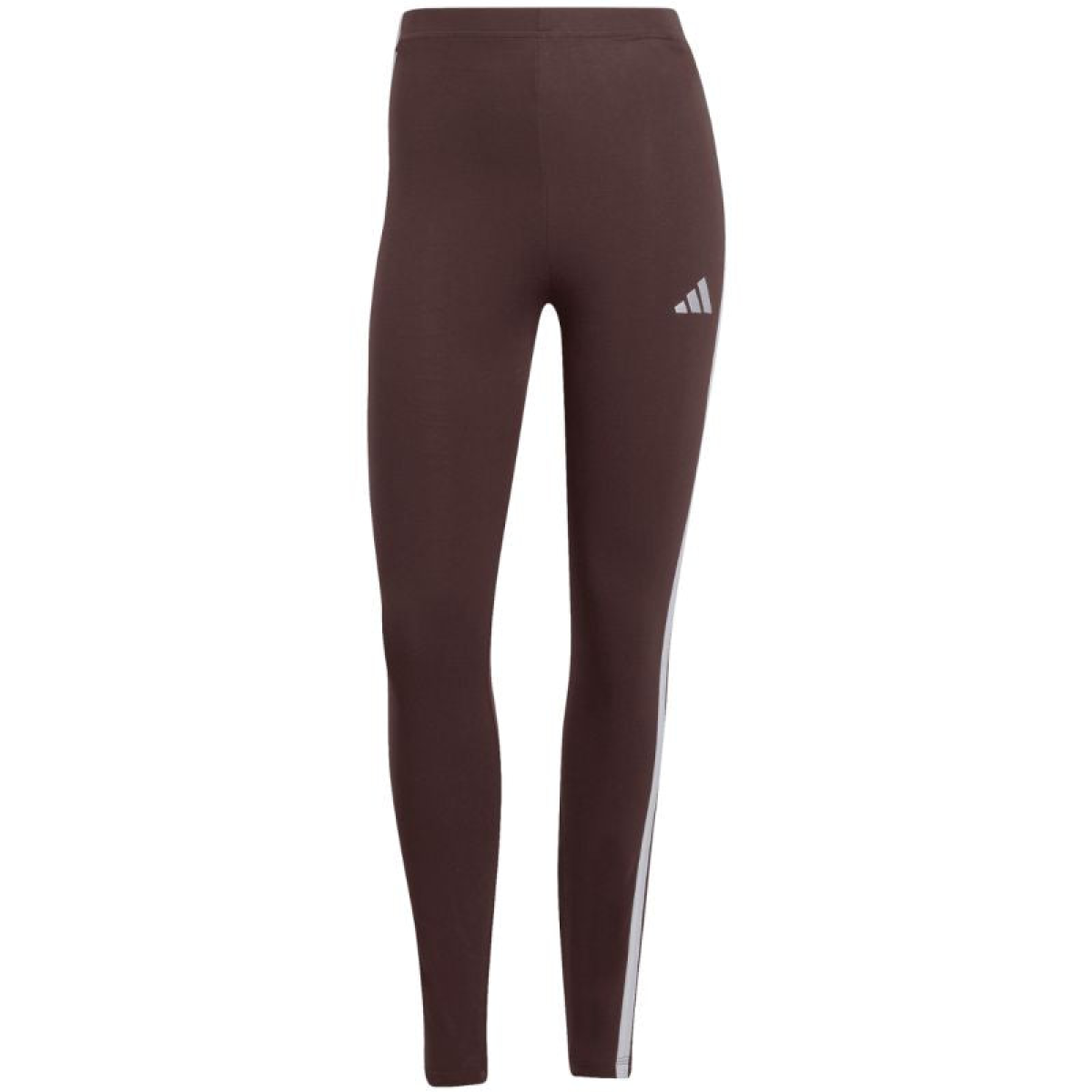 Women's adidas Essentials 3-Stripes Cotton Leggings, Brown JY3177. These women's adidas leggings are perfect for everyday wear. The high-cotton construction prevents irritation. The high-rise elastic waistband allows for a perfect fit. The fitted cut allows for full range of motion. Stripes on the sides and a smaller logo on the hip. Material: 90% cotton, 10% elastane