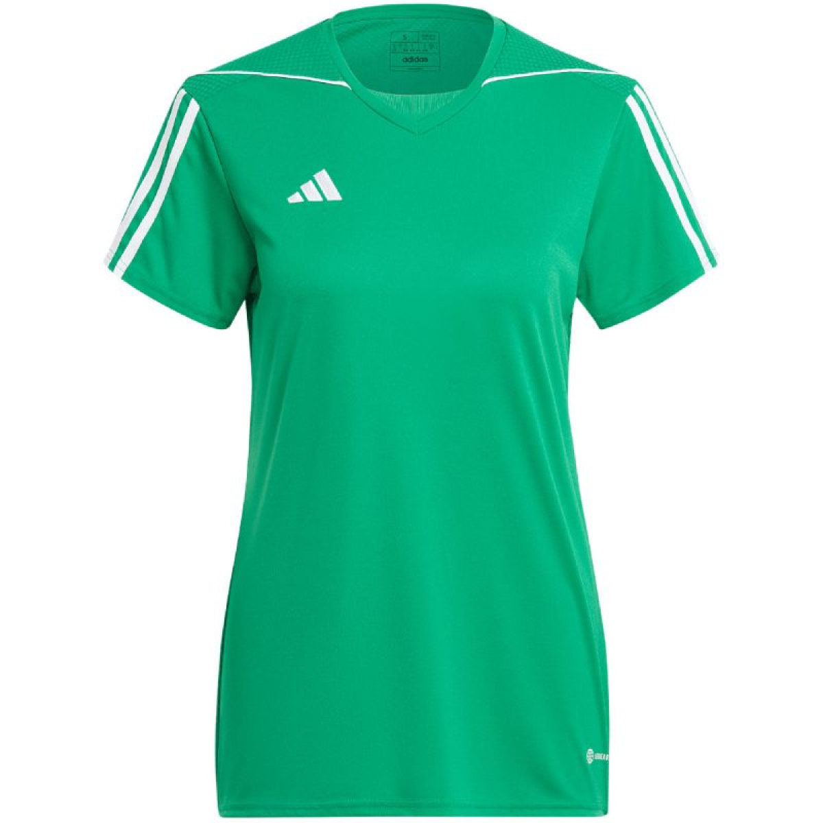 adidas Tiro 23 League Jersey, Green IC7481. This adidas women's jersey is perfect for the game. Standard fit. V-neck. Mesh back panel. Aeroready technology wicks away excess moisture. Recycled fibers. Material: 100% recycled polyester