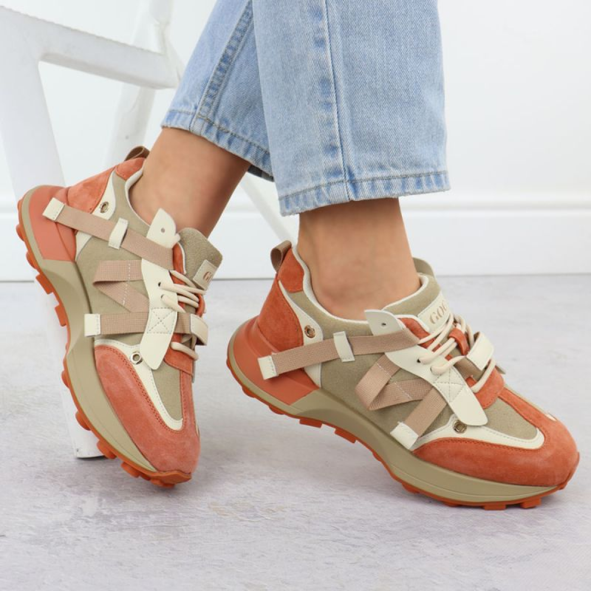 Women's beige and orange leather sneakers Goe RR2N4064