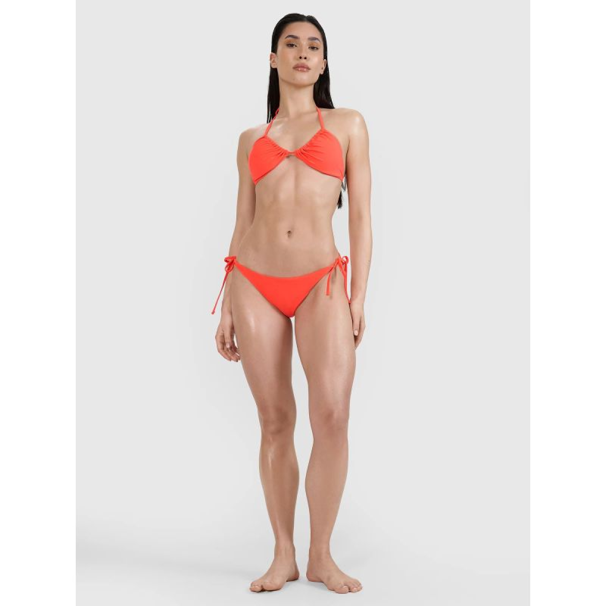The unpadded cups, in a classic triangle shape with removable pads, allow for a personalized fit. Ties at the neck and back allow for adjustment, making the bikini top suitable for a wide range of body types and ensuring a personalized fit.