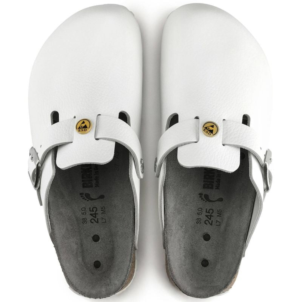 Women's Birkenstock Boston ESD White clogs natural leather medical narrow slippers (0061378)