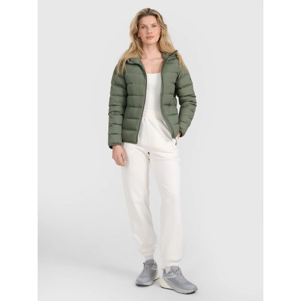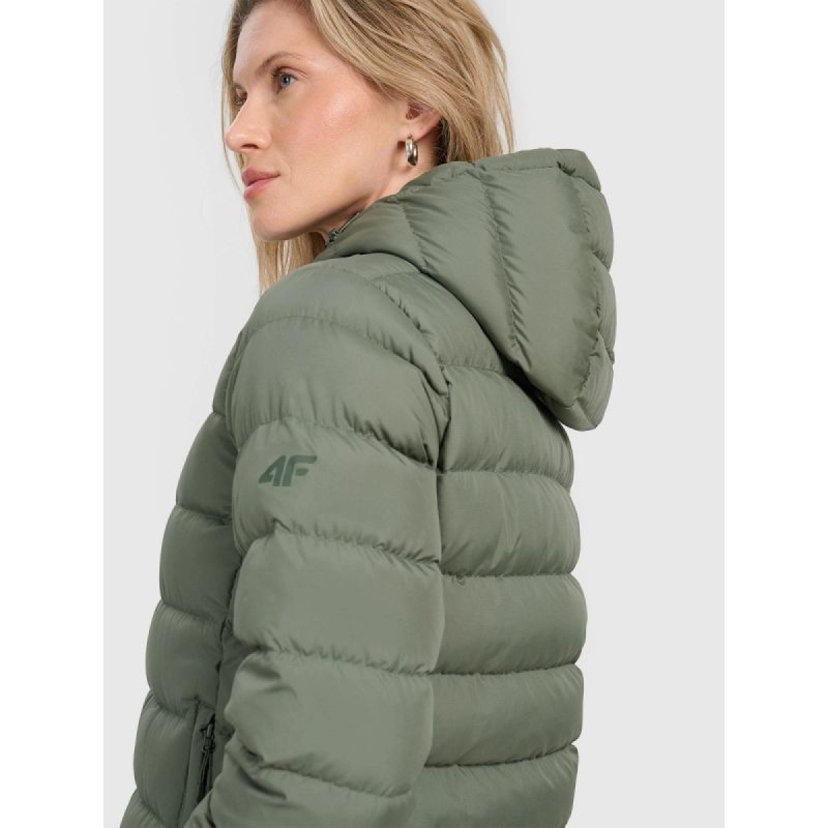 This women's down jacket is the perfect choice for transitional periods and cooler, drier days. Its natural 90/10 down fill guarantees high thermal comfort while maintaining low weight and excellent compressibility. A water-repellent coating and ripstop fabric protect against light rain and enhance the jacket's durability for everyday use. Featuring a hood, high collar, elastic cuffs, and practical pockets, this jacket offers functionality and comfort in every situation.