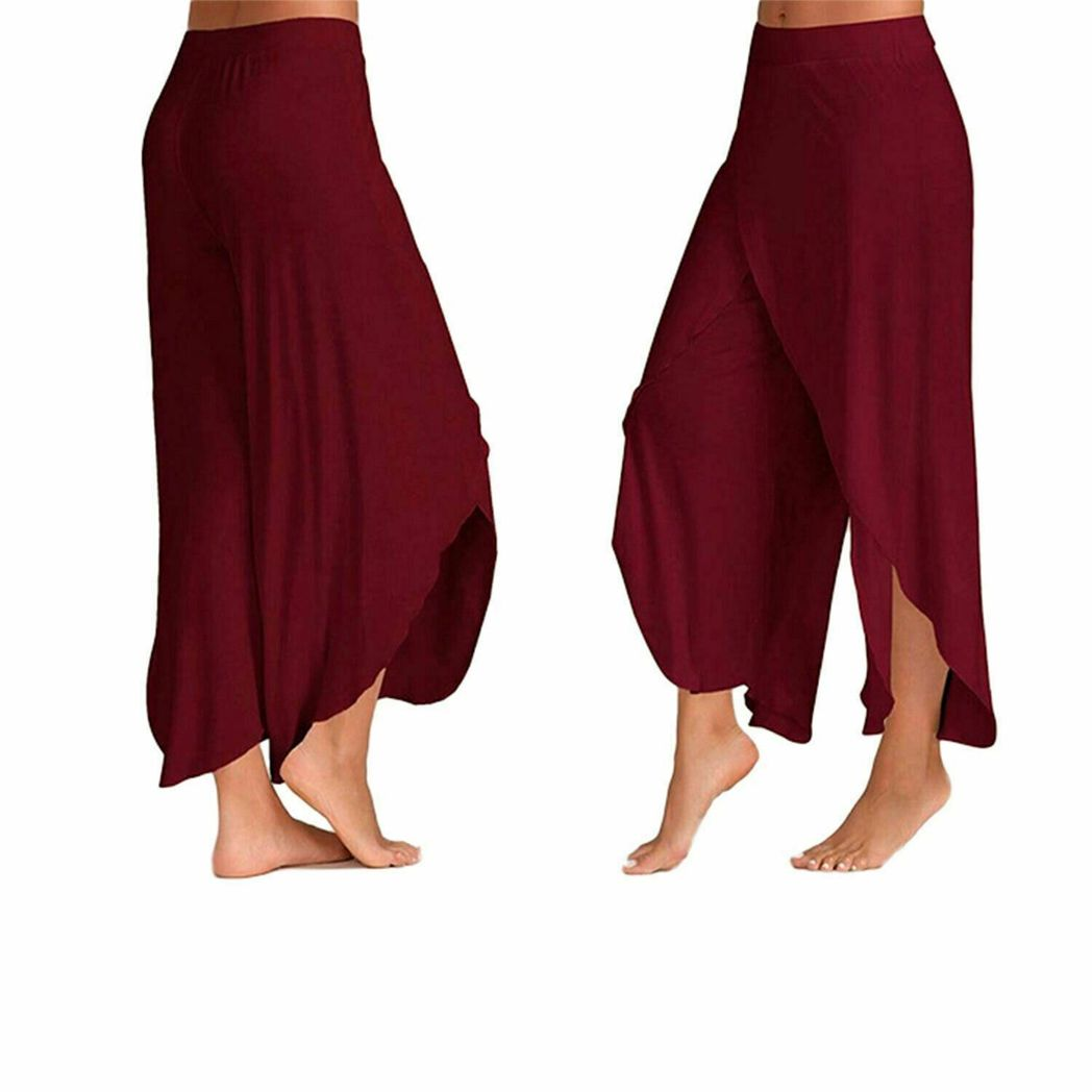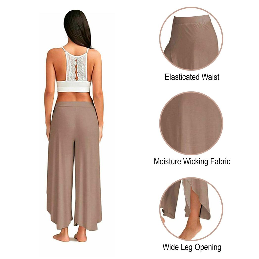 This Women's Yoga Pants with super soft fabric are made of 95% Rayon and 5% Spandex. They are featured in a stylish design and practical use. Wide trouser legs and ultra-comfortable fabric ensure freedom of movement and make you unrestricted. They are suitable for women who like doing yoga, Pilates, jogging, or other indoor or outdoor exercise.
