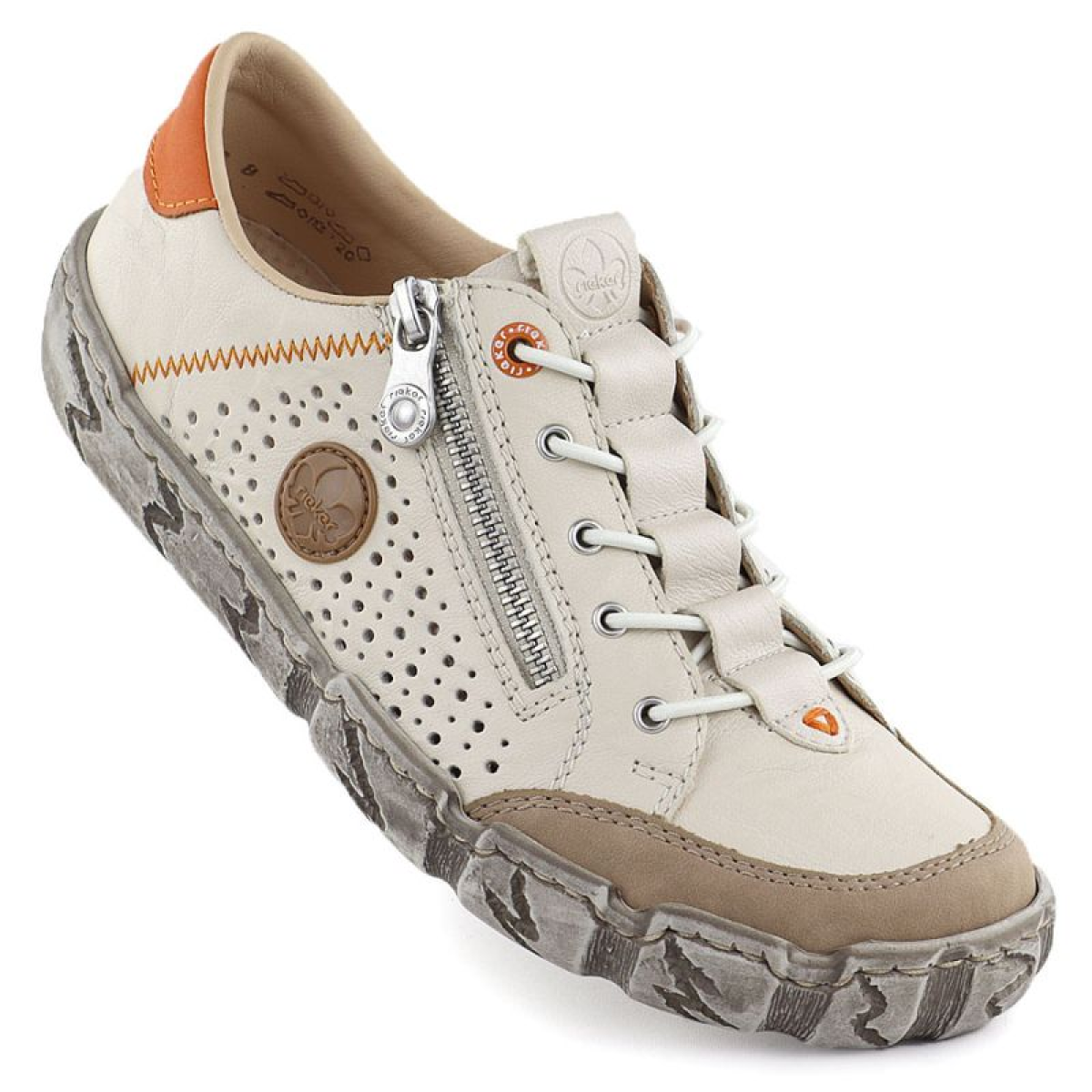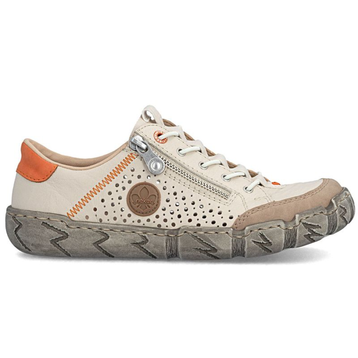 Women's leather openwork shoes, beige, Rieker L0355-61