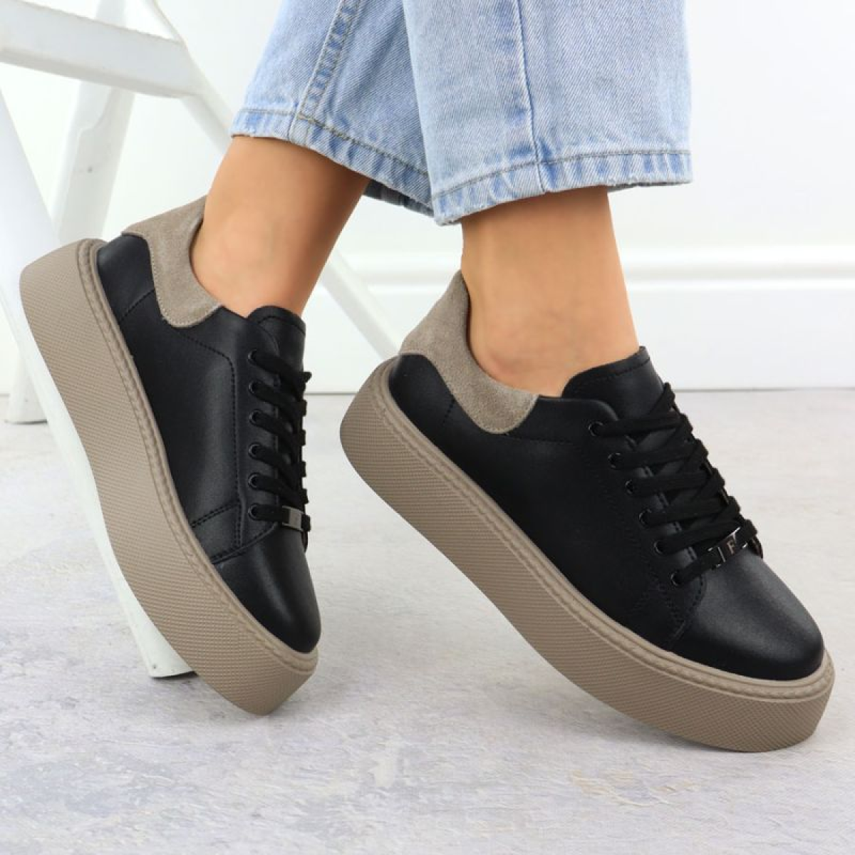Women's leather platform sneakers, black, Filippo DP6119