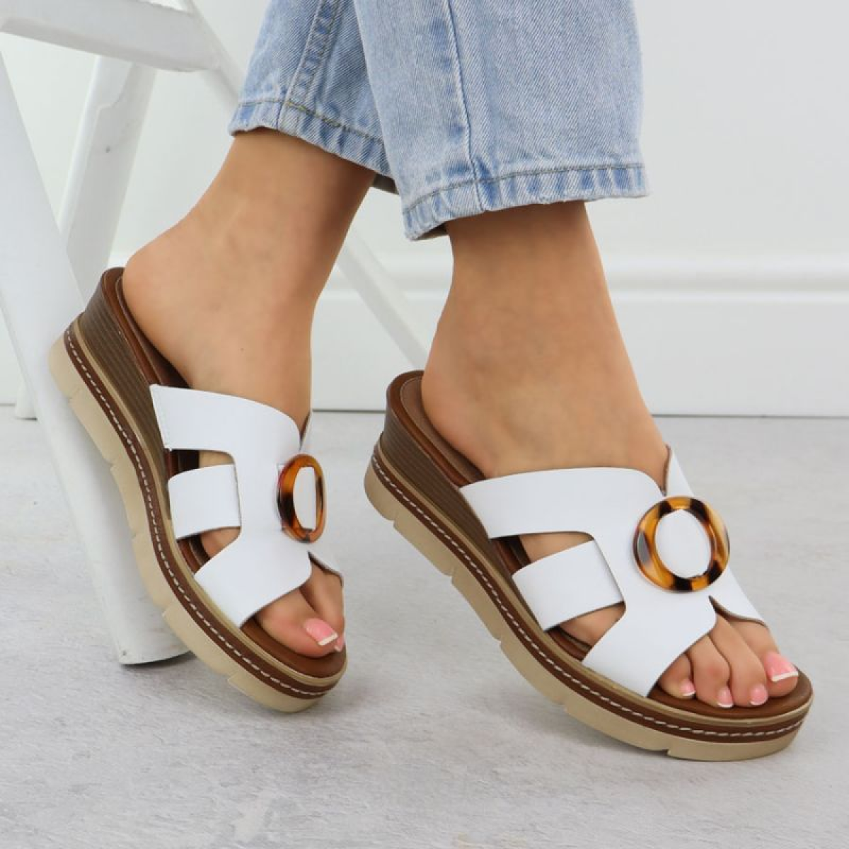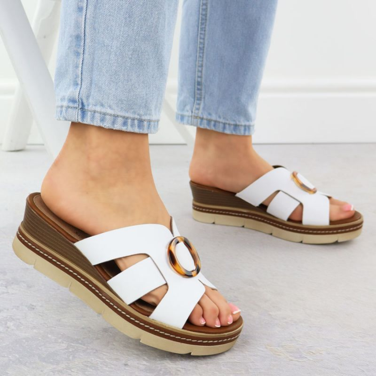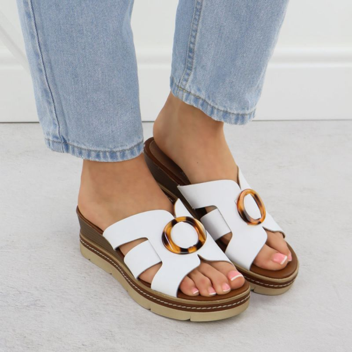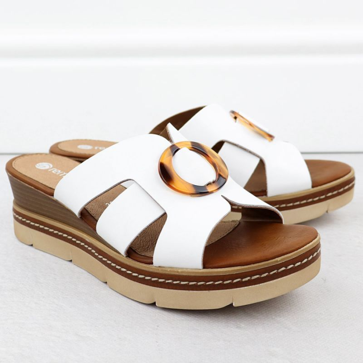 Women's leather wedge sandals white Remonte D2L52-80