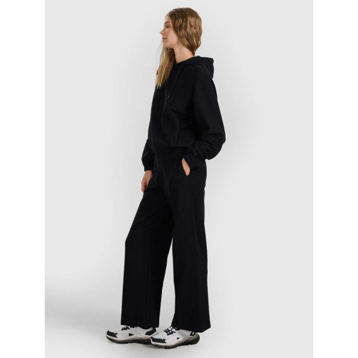 This brown 4F women's sweatshirt combines comfort, quality, and modern style for an everyday look. Crafted from 100% 325 gsm cotton, it's soft, durable, and comfortable to wear all day long. The crepe-like texture of the fabric gives it a lightweight feel and a unique character, while the cropped cut subtly accentuates the waist, creating a fashionable, feminine look perfect for everyday and casual outfits.