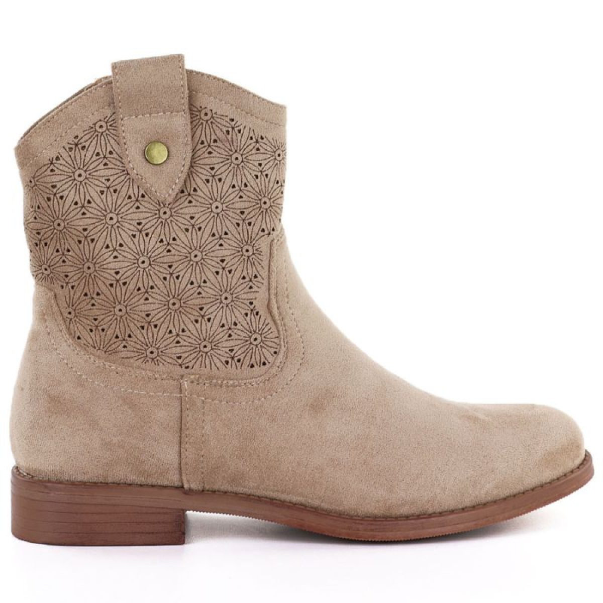 Women's openwork cowboy boots, suede, beige, S.Barski HY61-8025