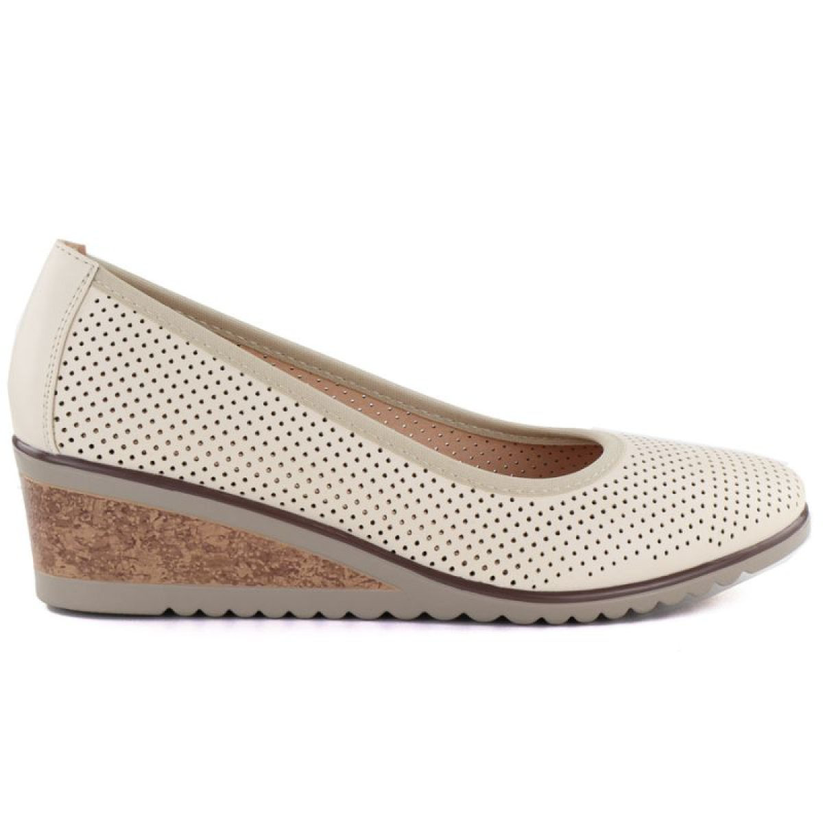 Women's openwork wedge pumps, beige, Vinceza 58629