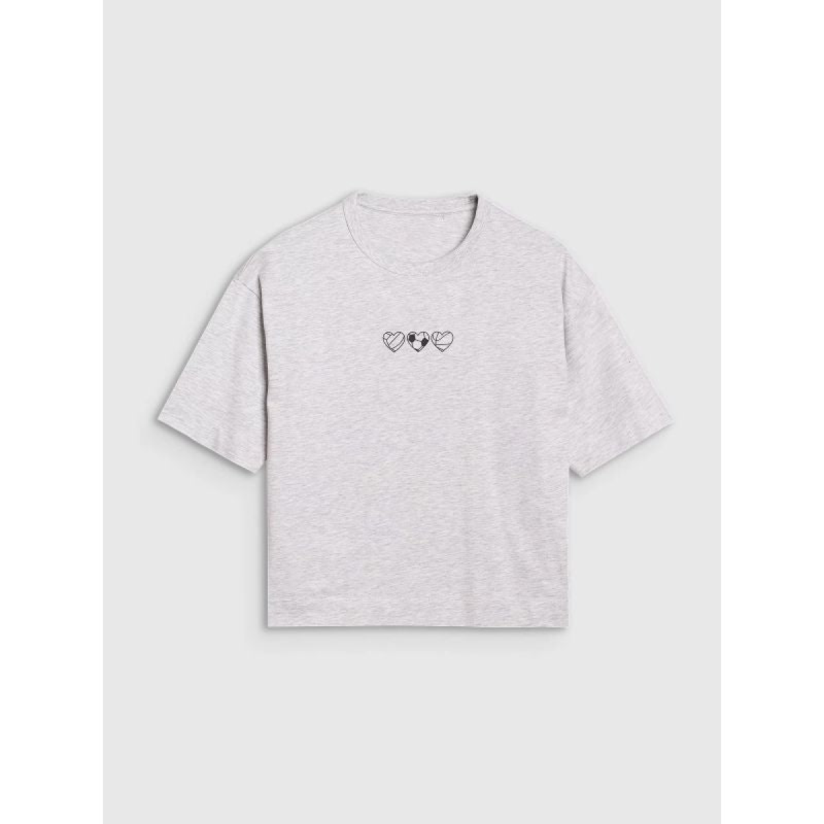 - Stylish Print: The front of the T-shirt features a visible print with hearts, which adds charm and a feminine character.