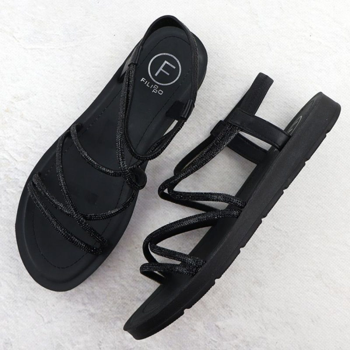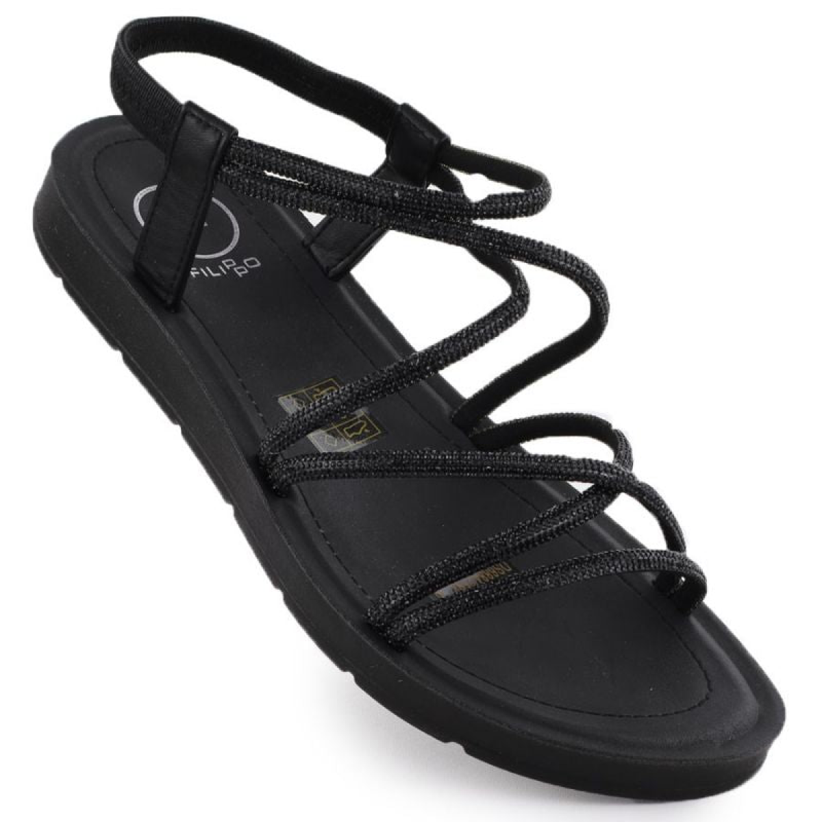 Women's Roman sandals with zircons, black Filippo DS6884