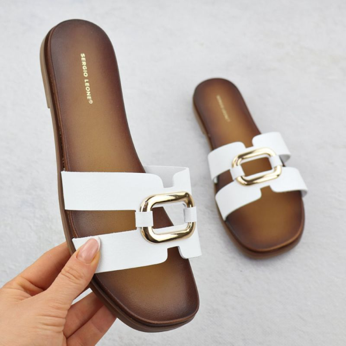 Women's slippers with decoration, white, Sergio Leone SK077H