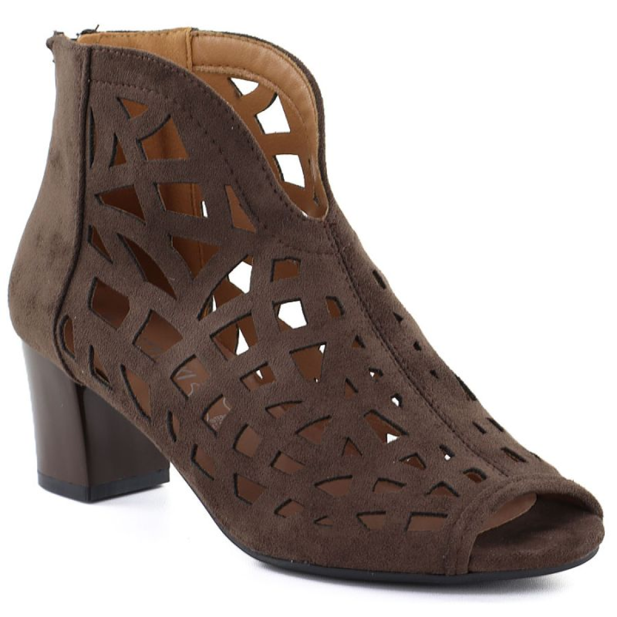Women's suede ankle boots with openwork, open toe, brown M.Daszyński MR1954-15