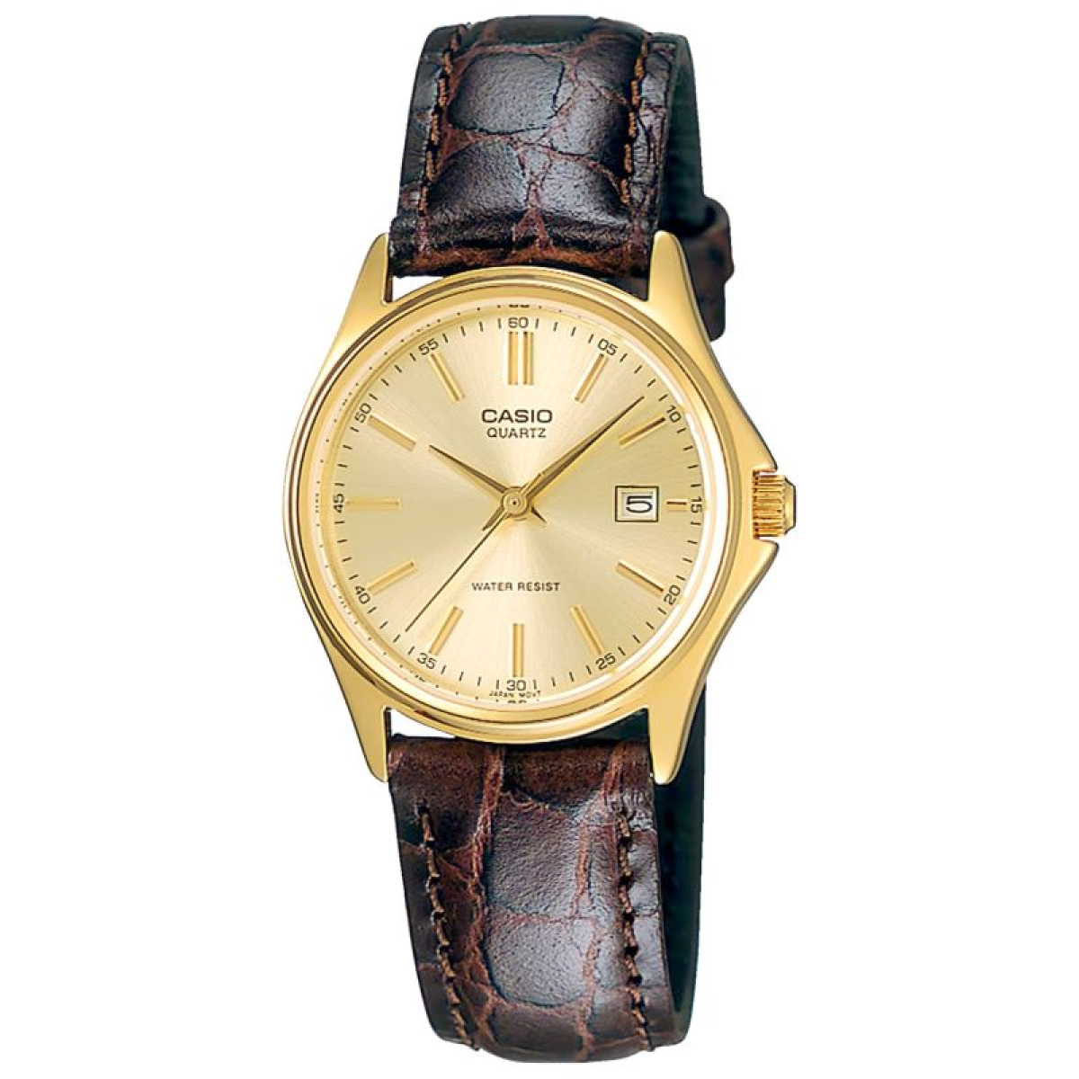 The Casio LTP1183Q--9ADF is a watch that combines timeless elegance with everyday practicality. The distinctive gold case contrasts with a gold dial, where legible indices and a date display at 3 o'clock ensure easy reading in any situation, while the soft leather strap adds class and comfort. Mineral crystal protects the dial from damage, and 30m water resistance ensures the watch can withstand everyday challenges. It's the perfect choice for women who value Casio's durability, the reliable precision of a quartz movement, and an elegant look that suits both work and after-hours meetings.