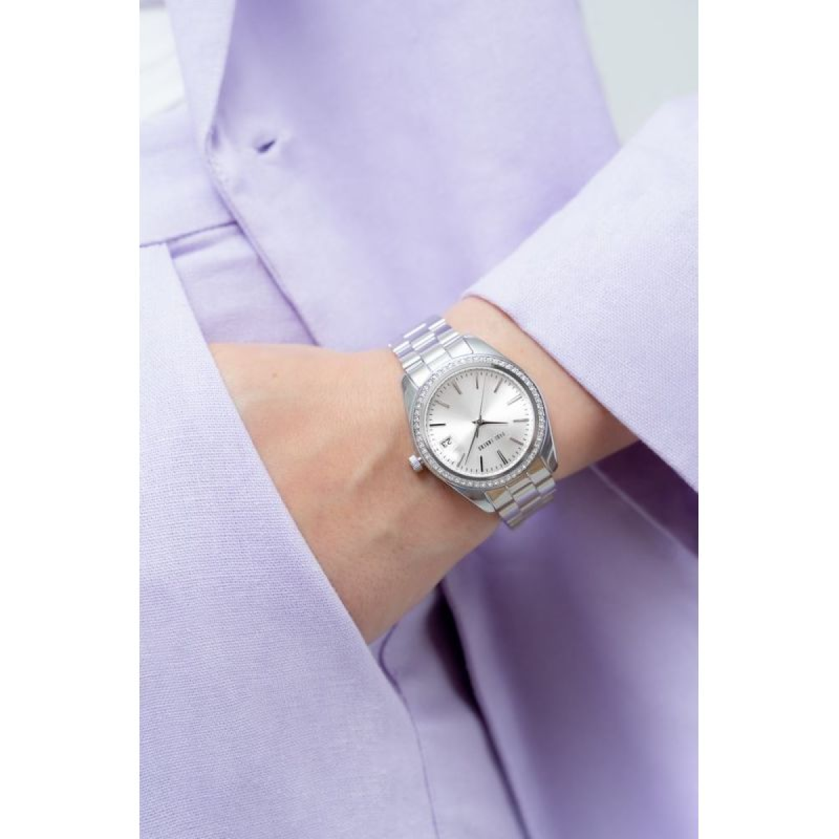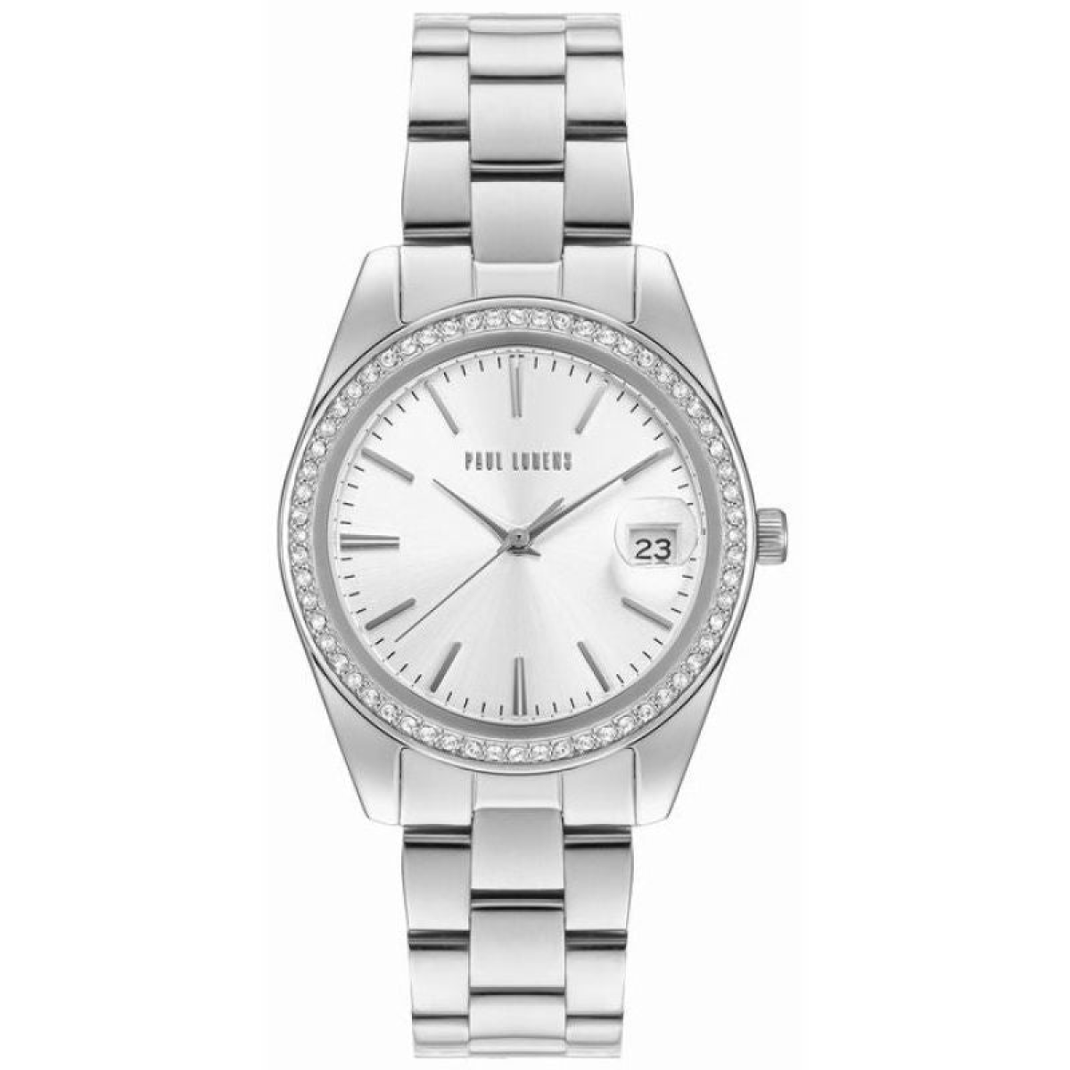 Its smooth, subtly shimmering surface harmoniously wraps the wrist, ensuring all-day comfort. Its precise contouring perfectly fits a woman's hand, subtly accentuating the wrist's slenderness and adding a touch of elegance to any outfit. Stainless steel combines both durability and lightness, making the watch exceptionally comfortable to wear. The bracelet's design perfectly balances luxury with everyday simplicity, making this watch ideal for both evening wear and everyday wear. The Paul Lorens logo on the bracelet clasp completes the look.