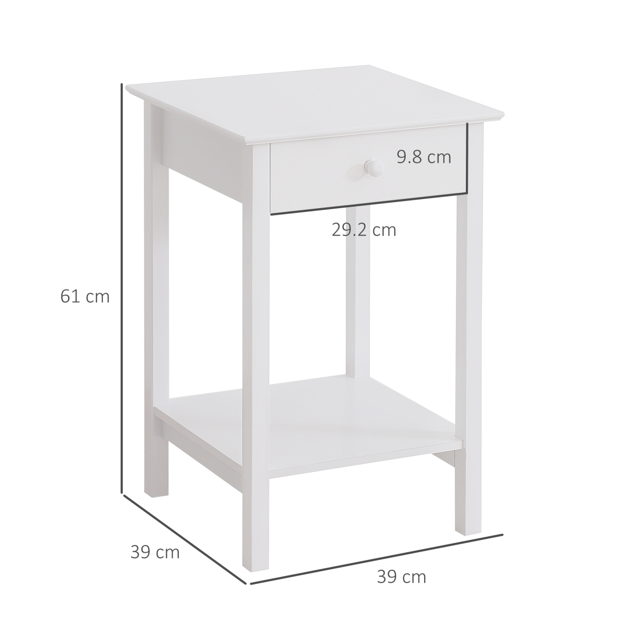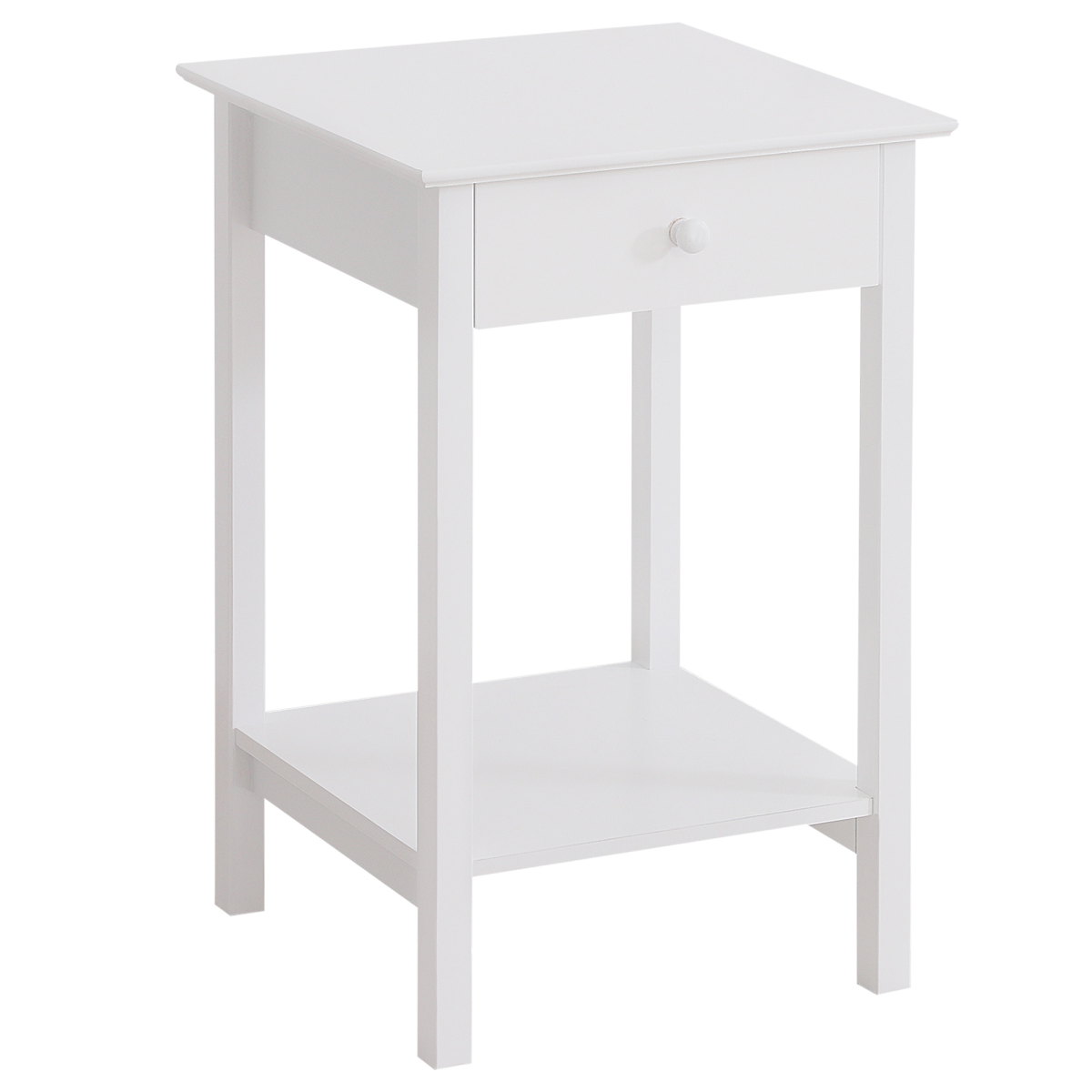 - Wooden Bedside Table Cabinet W/ Drawer Shelf Storage End Side White