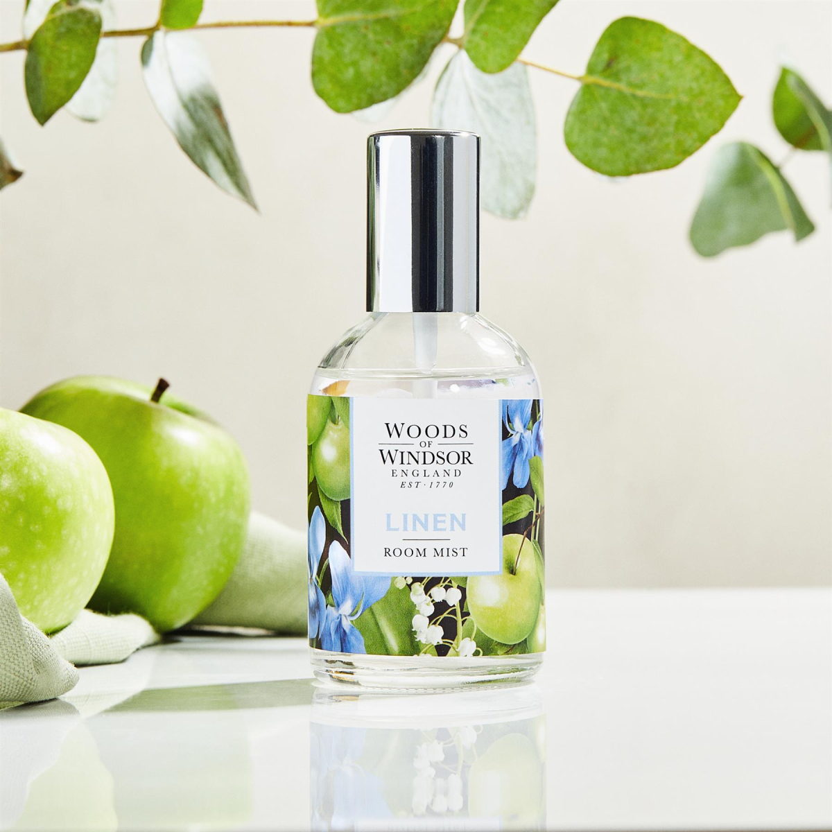 A freshly fragranced room mist to keep the home beautifully fragranced. Vegan, cruelty-free, and designed in Great Britain. 80% naturally-derived ingredients and includes a widely recyclable cap. A cotton fresh fragrance with green apple and lily of the valley. Opening with citrus fruity notes and jasmine, warming into a heart of the orange flower and ylang-ylang and settling into base notes of musk and amber.