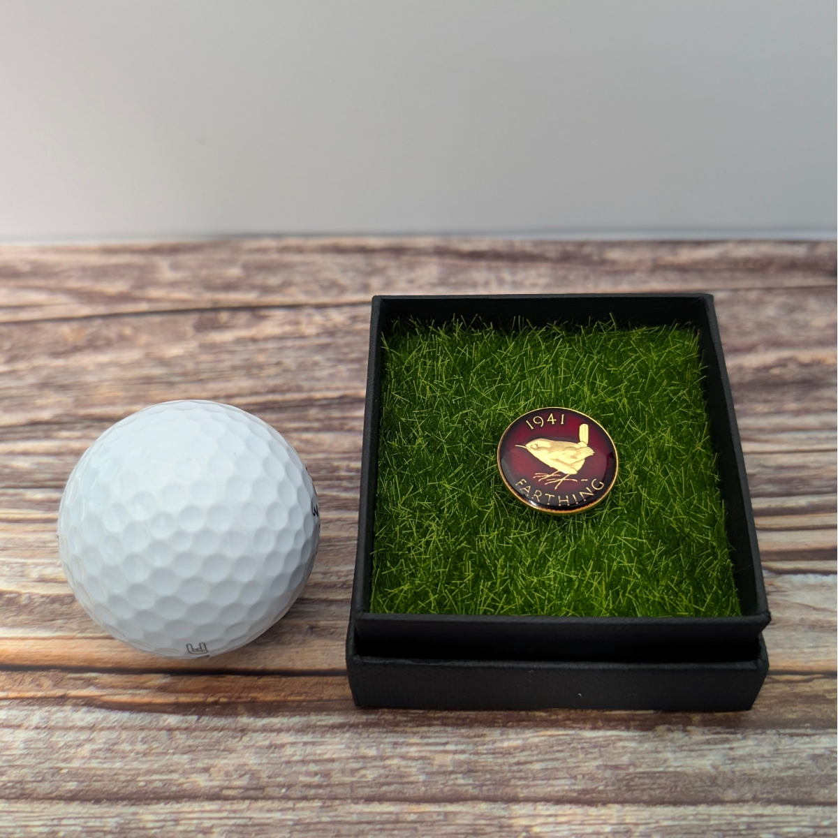 The golf ball marker is presented in the box seen in the photos with a certificate of authenticity. There is the option to not have the box for £5 less where it will come in a pouch instead.