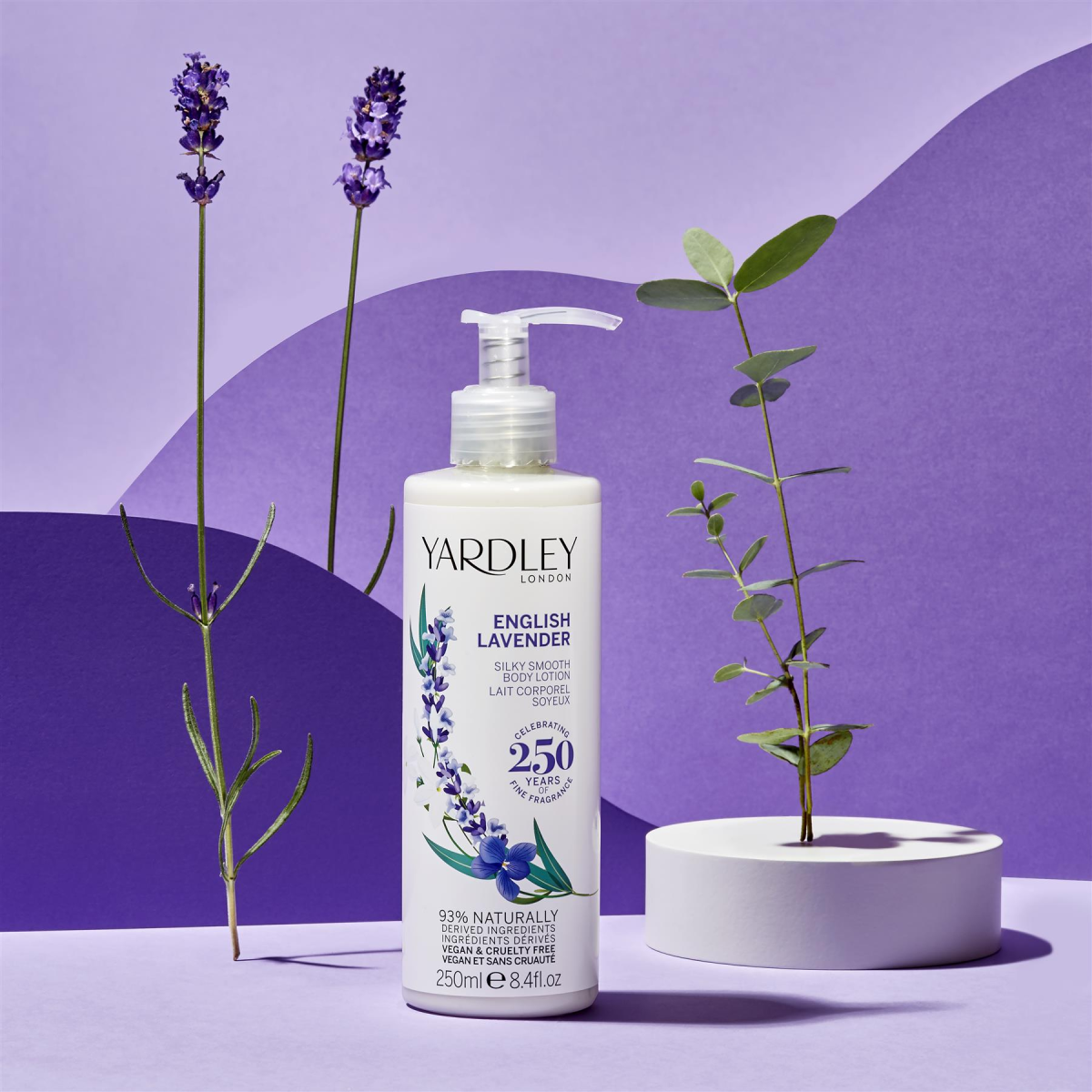 This luxurious smoothing Body Lotion is infused with Yardley London's English Lavender fragrance. English Lavender is a beautifully fresh, clean elegant fragrance combining bergamot and clary sage with a heart combining English Lavender, eucalyptus, geranium, jasmine, chamomile and violet, enhanced with deeper, warm notes of wood, vanilla and patchouli. Containing soothing Lavender extract, moisturising sustainable shea butter, borage oil and sustainable rosehip oil, rich in vitamins A, C and E, the cream absorbs quickly into the skin to help combat the signs of ageing, leaving it feeling soft, smooth, nourished and delicately fragranced.