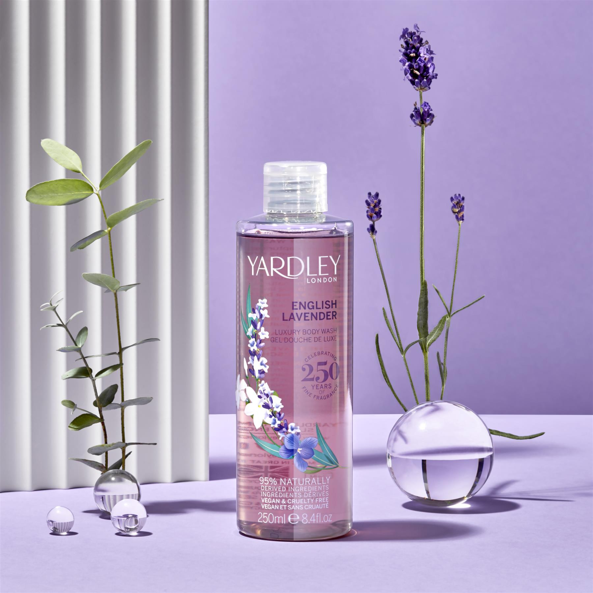 This creamy, moisturising shower gel Body Wash helps maintain the skins natural moisture levels. Infused with Yardley London’s English Lavender fragrance, combining fresh, light, calming English lavender with notes of geranium, chamomile and eucalyptus. With its nourishing blend of relaxing lavender extract, moisturising sustainable shea butter, borage oil and sustainable rosehip oil, rich in vitamins A, C and E, it cleanses and hydrates the skin leaving it feeling soft, smooth and delicately fragranced.