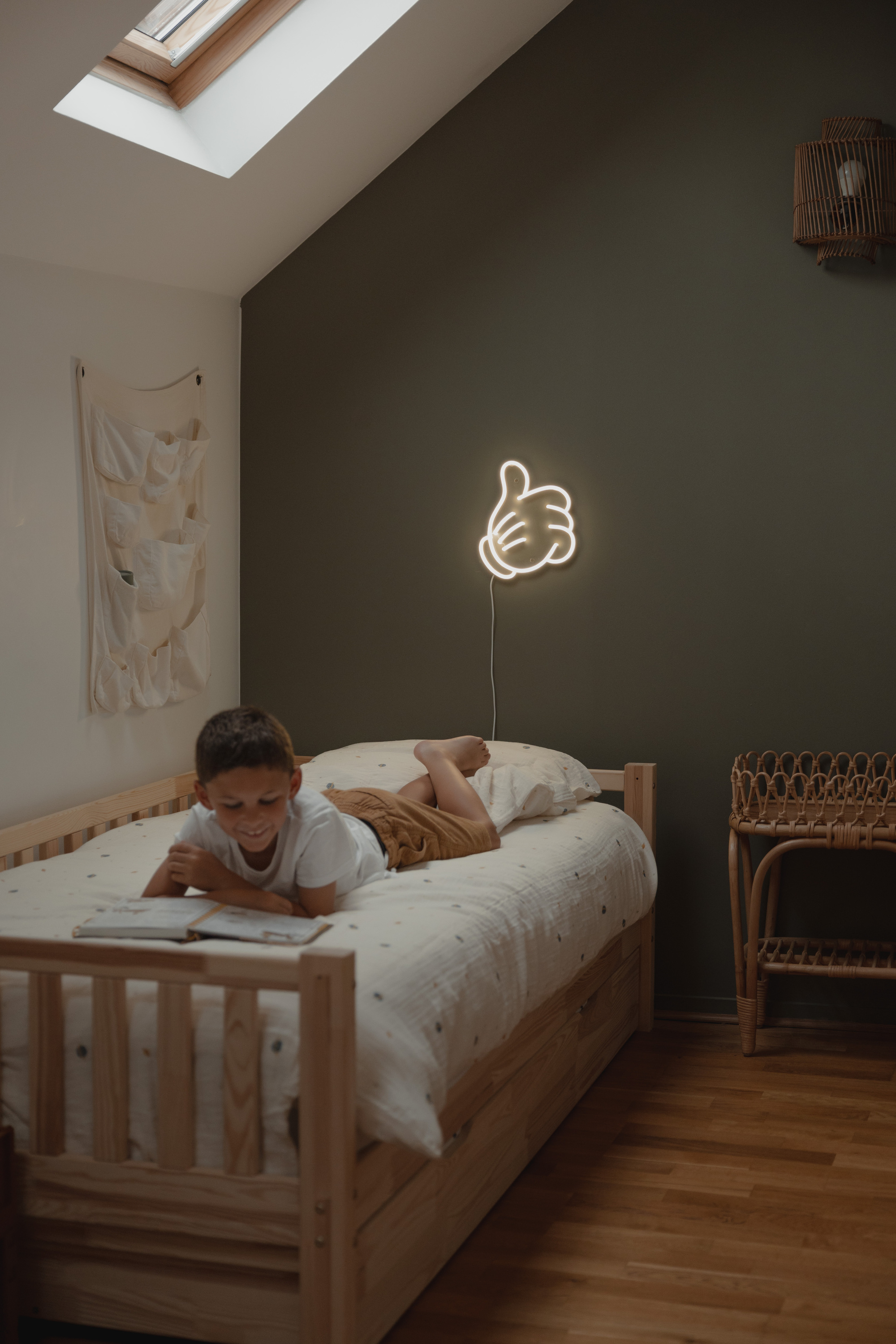 Bring a bit of Disney magic to your space with the Mickey Mouse Glove Thumbs Up (Small) LED neon sign by Yellowpop. Designed in collaboration with Disney, this playful white LED sign features Mickey’s iconic glove giving a cheerful thumbs up—instantly adding nostalgia, personality, and charm to any room. Whether it’s for a bedroom, office, or creative space, it’s the perfect way to showcase your love for an enduring classic.