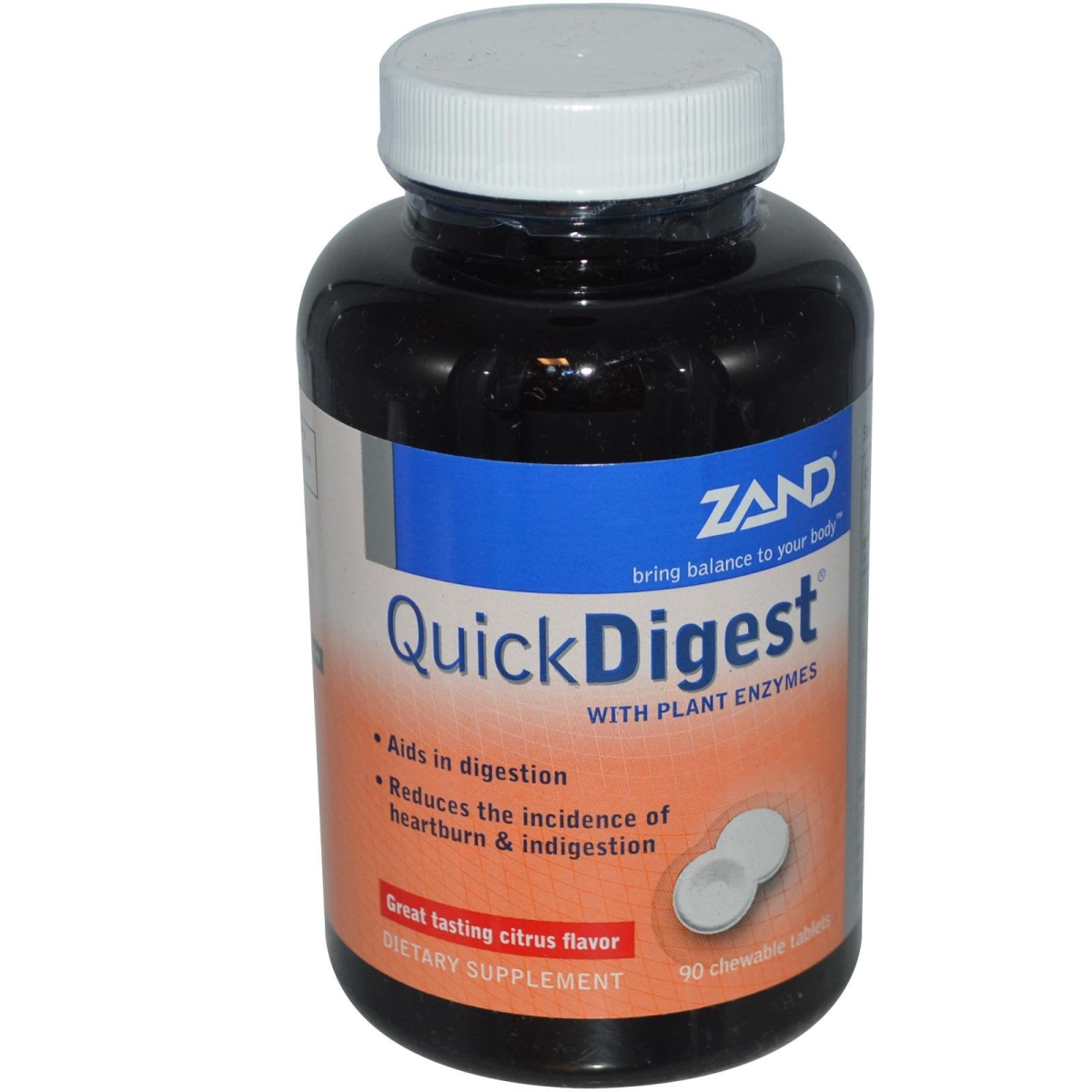 Bring Balance to Your Body With Plant Enzymes Aids in Digestion Reduces the Incidence of Heartburn & Indigestion Great Tasting Citrus Flavor Dietary Supplement Zand Quick Digest tablets are a great tasting before and after meal supplement containing the plant based enzymes Lipase, Cellulase, Amylase, Papain and Bromelain with Papaya Fruit and Calcium to support healthy digestion.