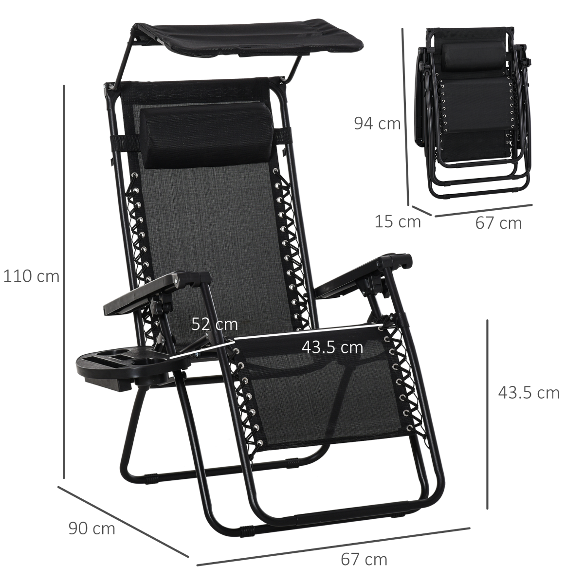Zero Gravity Folding Sun Lounger Reclining Seat & Cup Holder & Canopy, Black